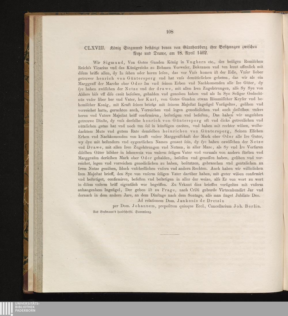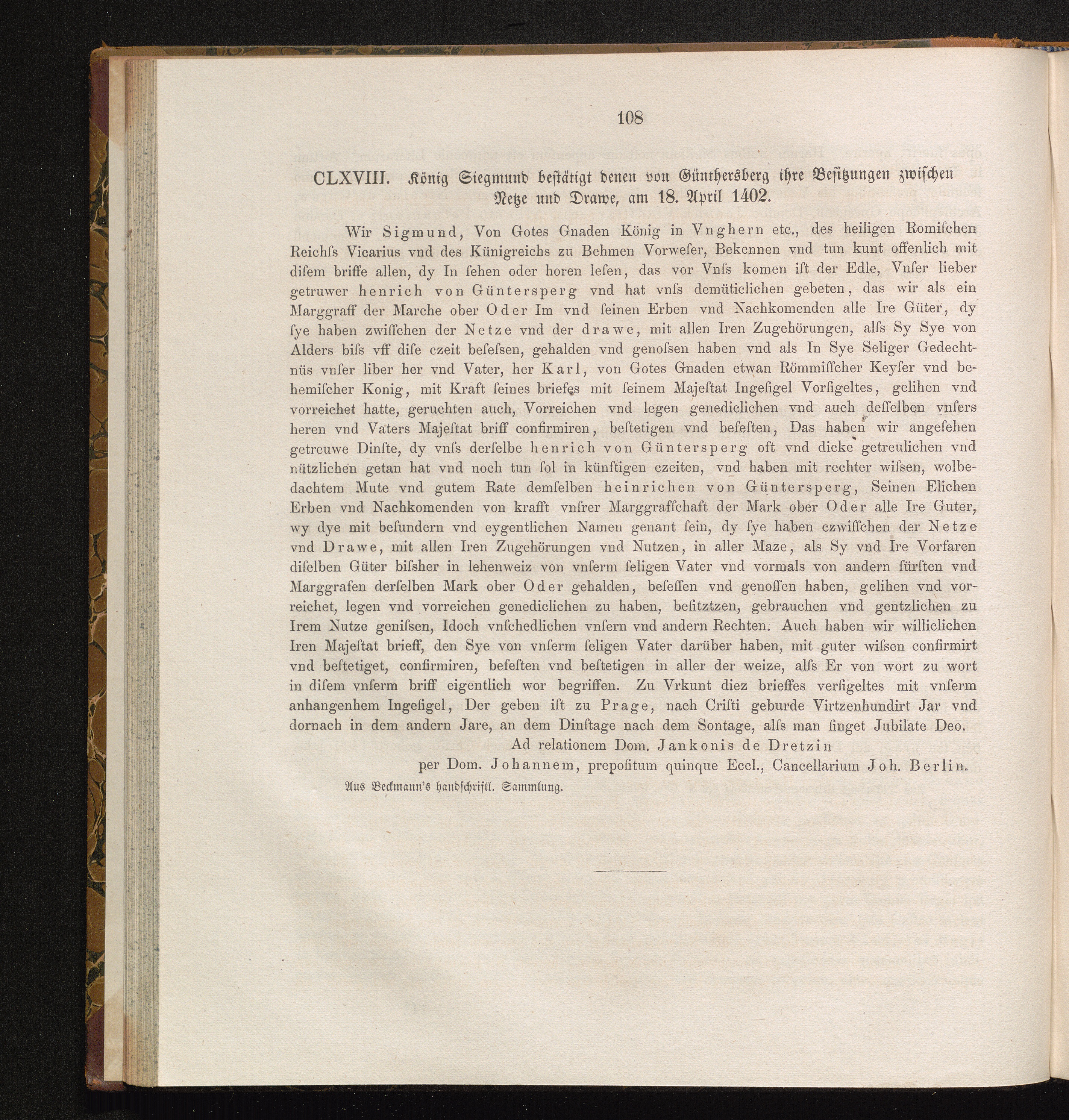 CLXVIII. König Siegmund bestätigt denen von Günthersberg ihre Besitzungen zwischen[...]
