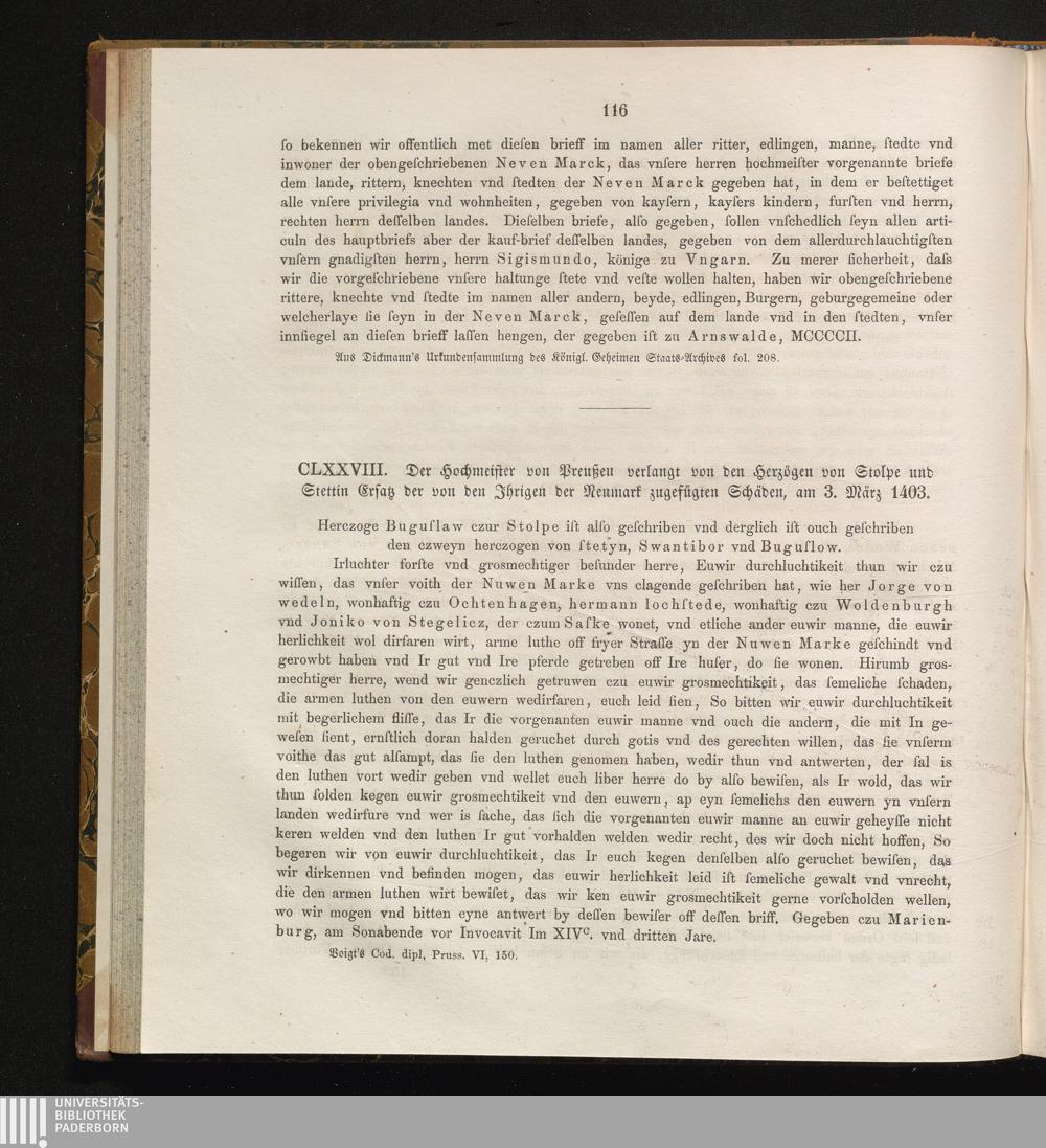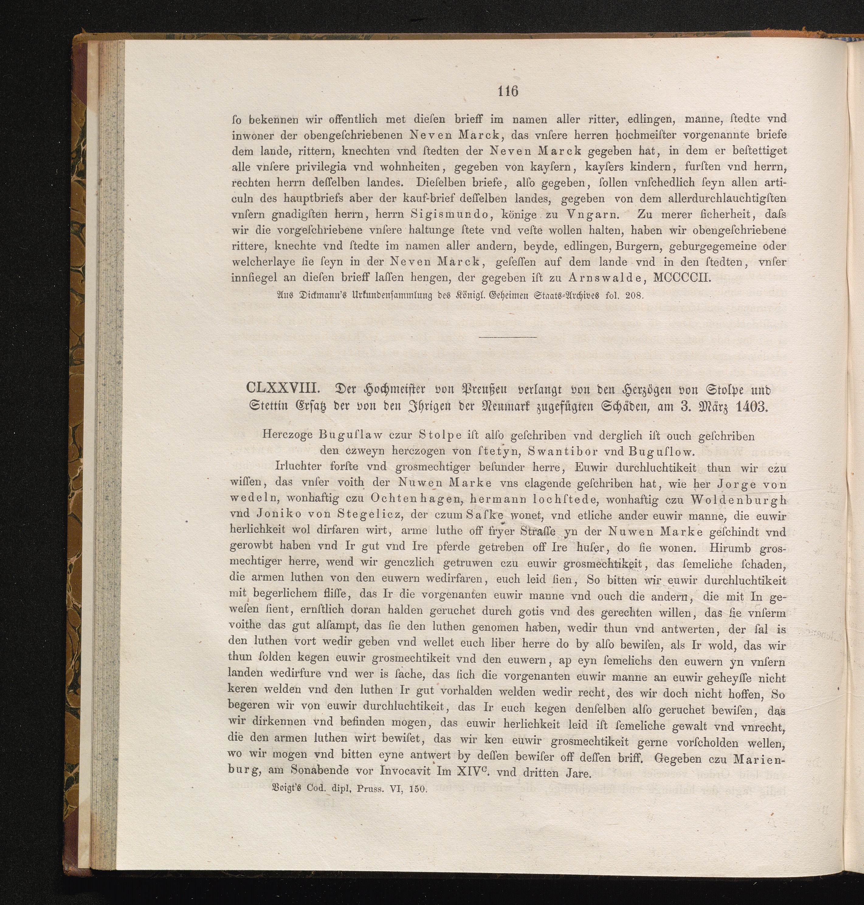 CLXXVIII. Der Hochmeister von Preußen verlangt von den Herzögen von Stolpe und Stettin[...]