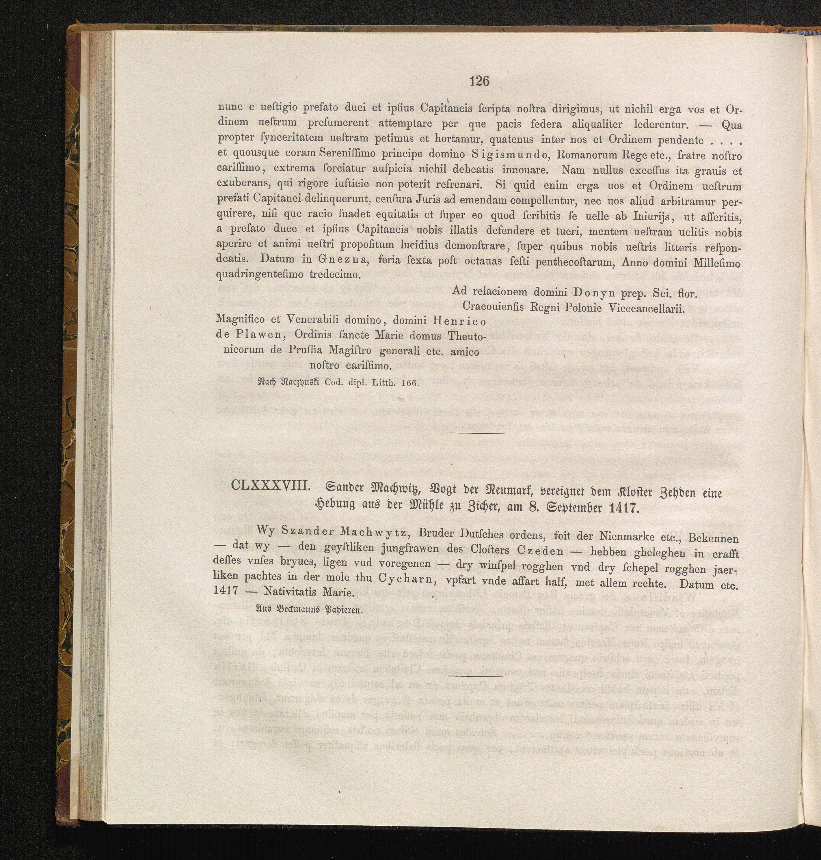CLXXXVIII. Sander Machwitz, Vogt der Neumark, vereignet dem Kloster Zehden eine Hebung[...]