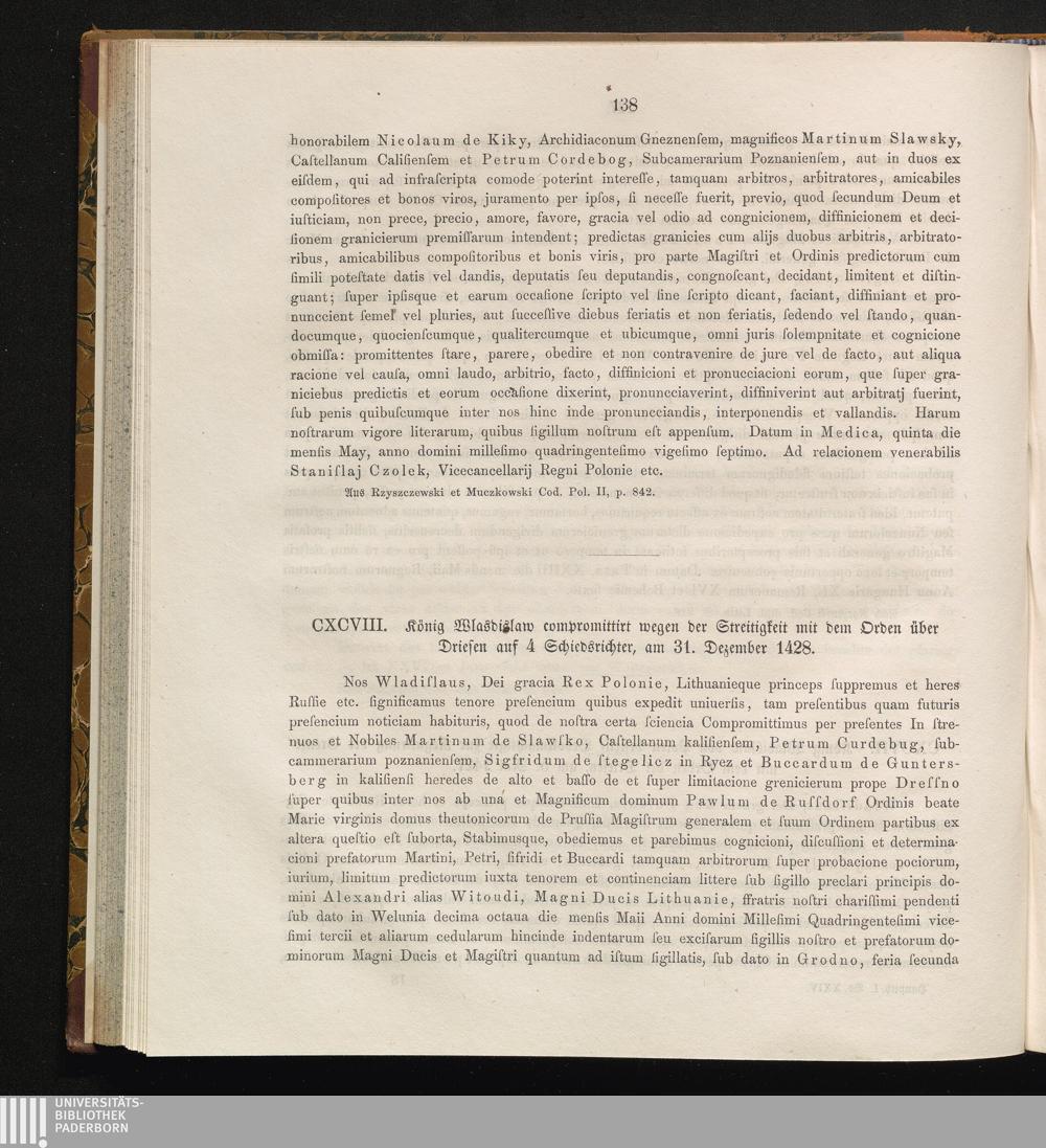 CXCVIII. König Wladislaw compromittirt wegen der Streitigkeit mit dem Orden über[...]
