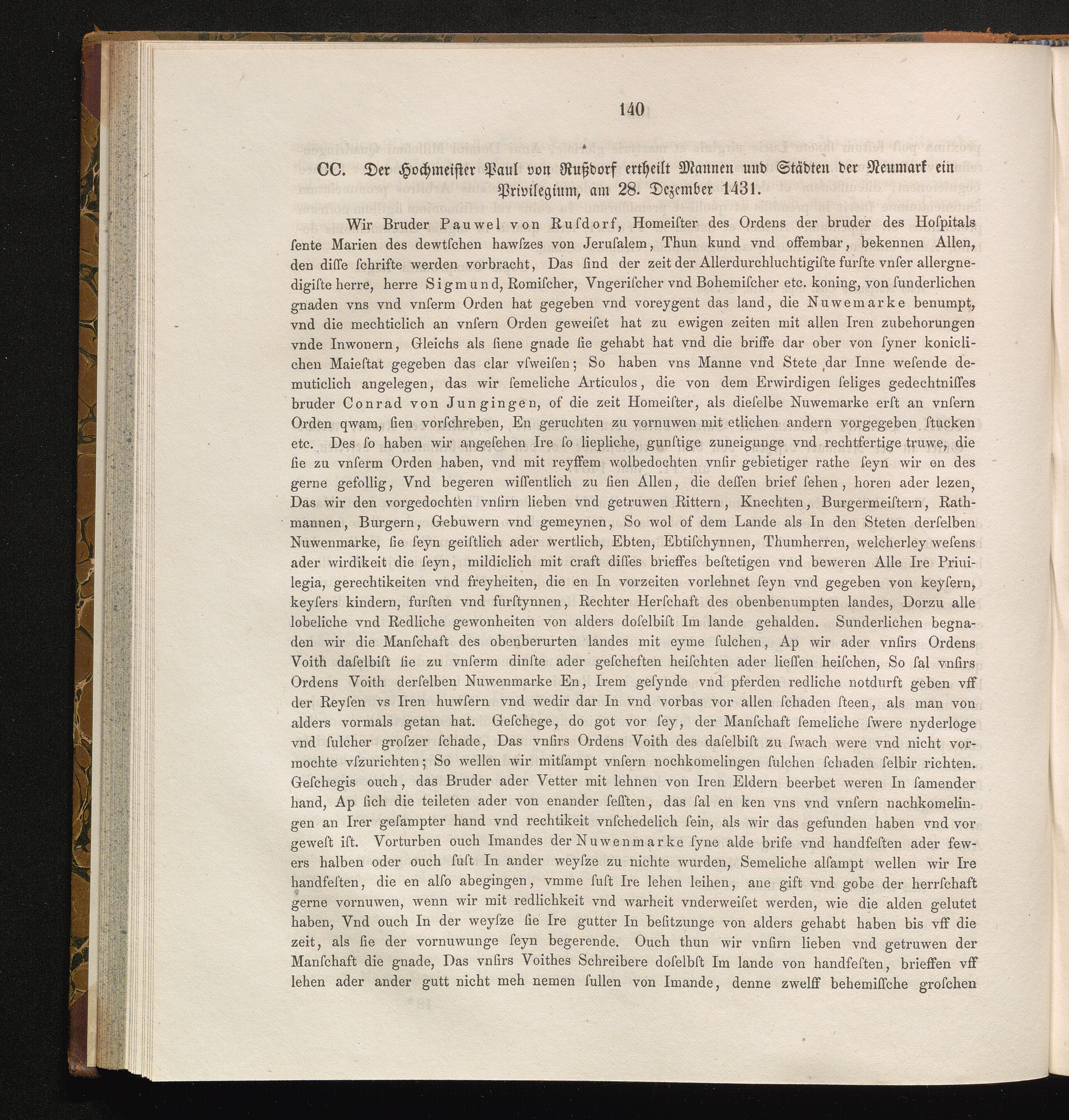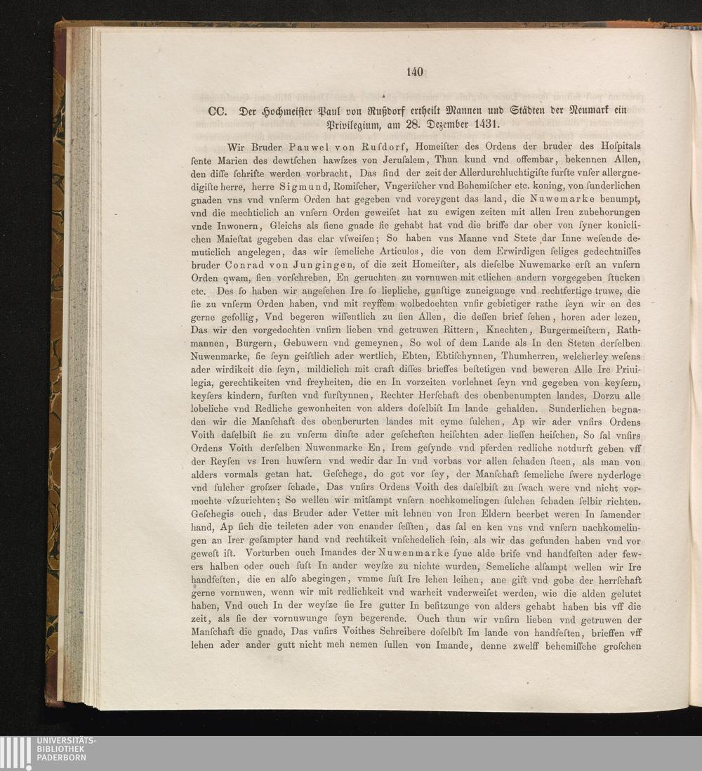 CC. Der Hochmeister Paul von Rußdorf ertheilt Mannen und Städten der Neumark ein[...]