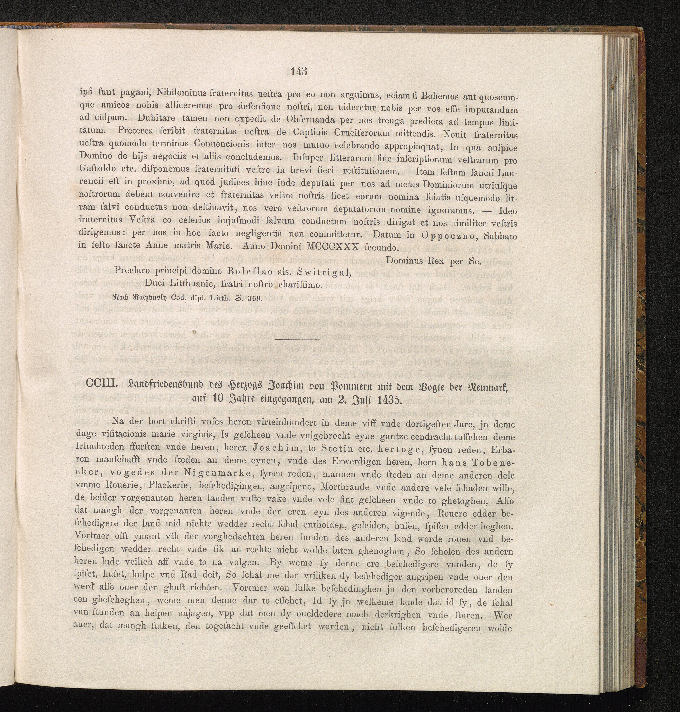 CCIII. Landfriedensbund des Herzogs Joachim von Pommern mit dem Vogte der Neumark,[...]