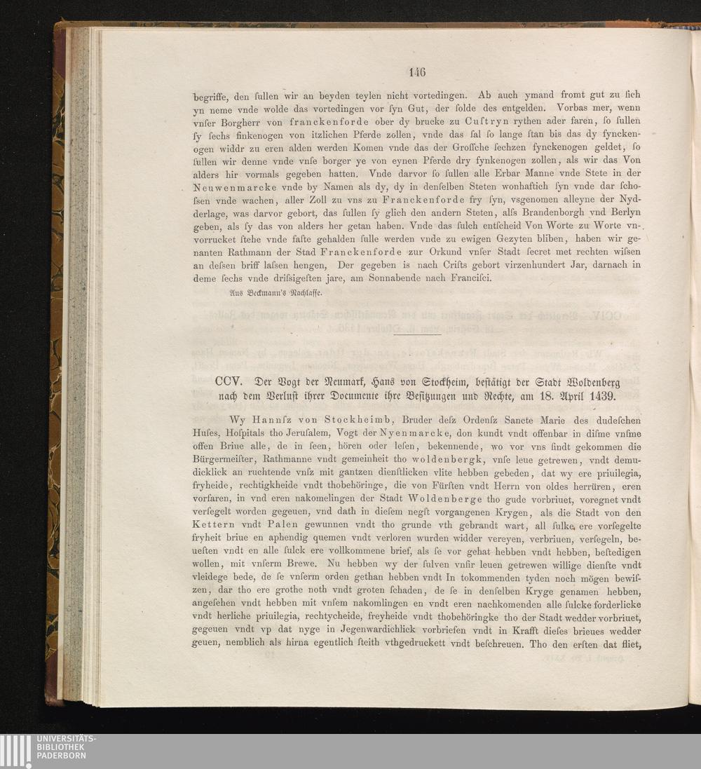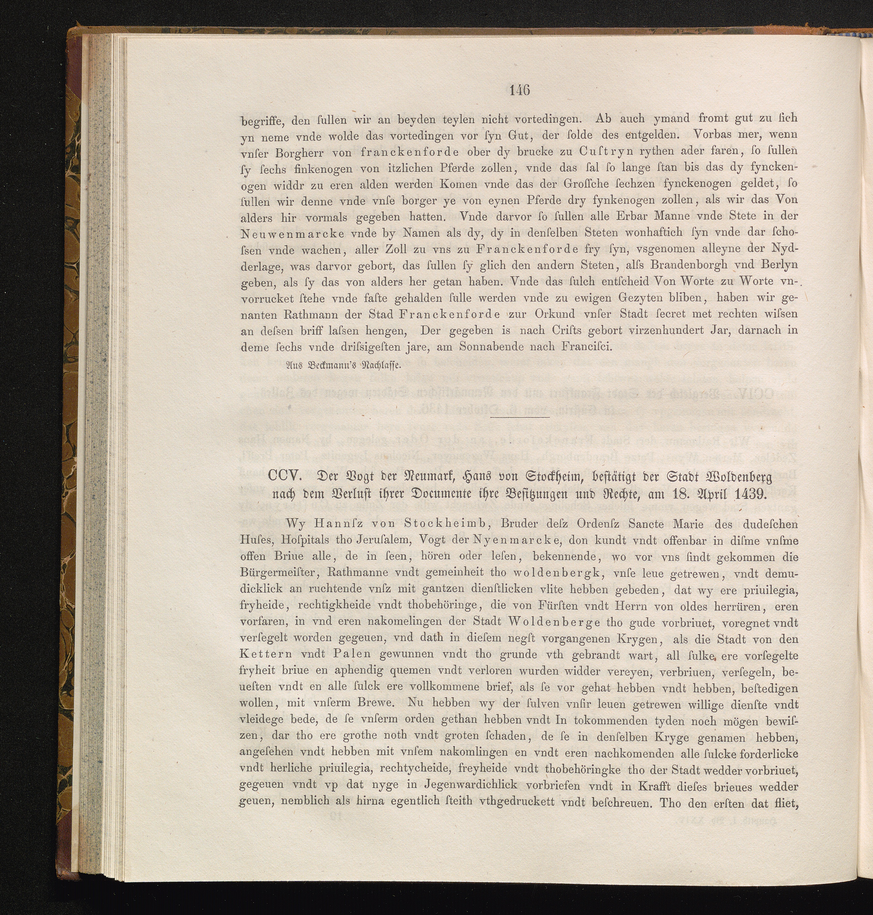 CCV. Der Vogt der Neumark, Hans von Stockheim, bestätigt der Stadt Woldenberg nach[...]