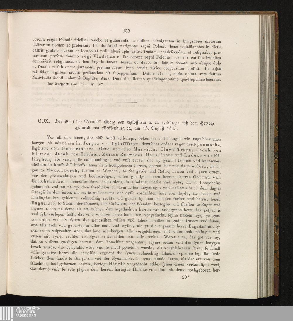 CCX. Der Vogt der Neumark, Georg von Egloffstein u. A. verbürgen sich dem Herzoge[...]