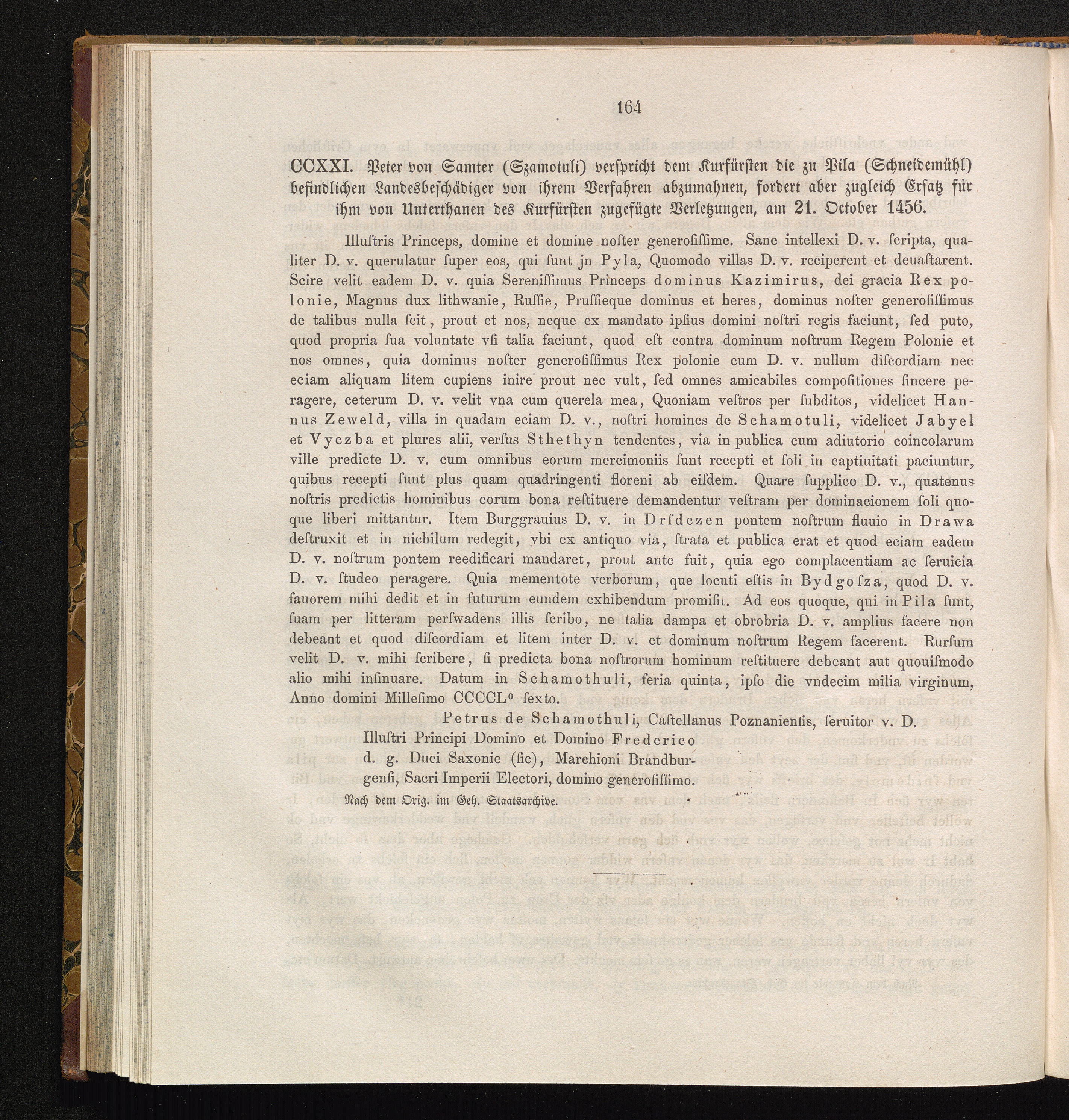 CCXXI. Peter von Samter (Szamotuli) verspricht dem Kurfürsten die zu Pila (Schneidemühl)[...]