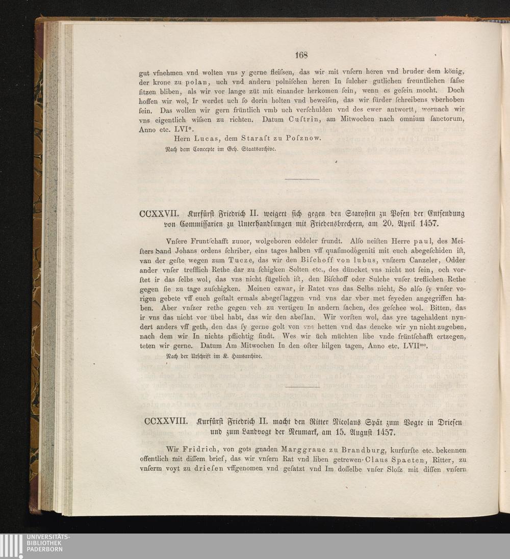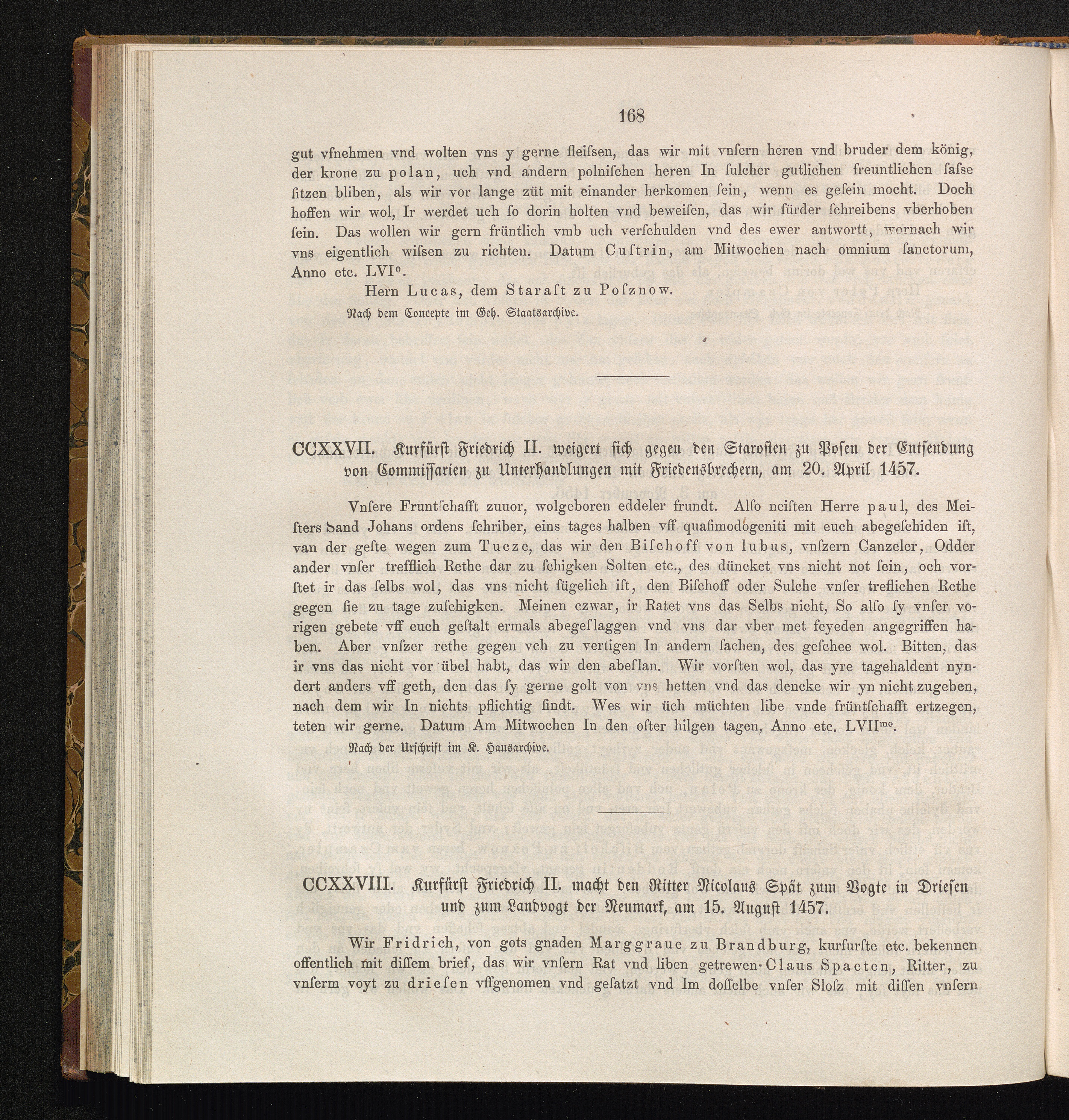 CCXXVIII. Kurfürst Friedrich II. macht den Ritter Nicolaus Spät zum Vogte in Driesen[...]