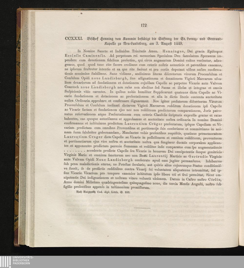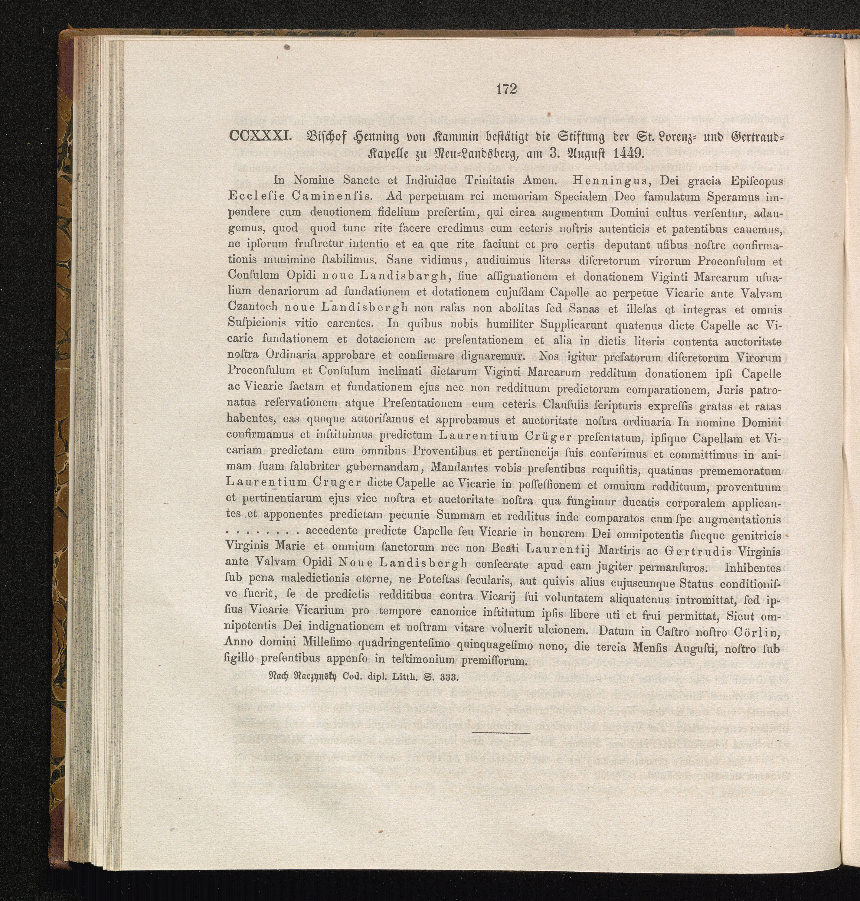 CCXXXI. Bischof Henning von Kammin bestätigt die Stiftung der St. Lorenz- und Gertraud-Kapelle[...]