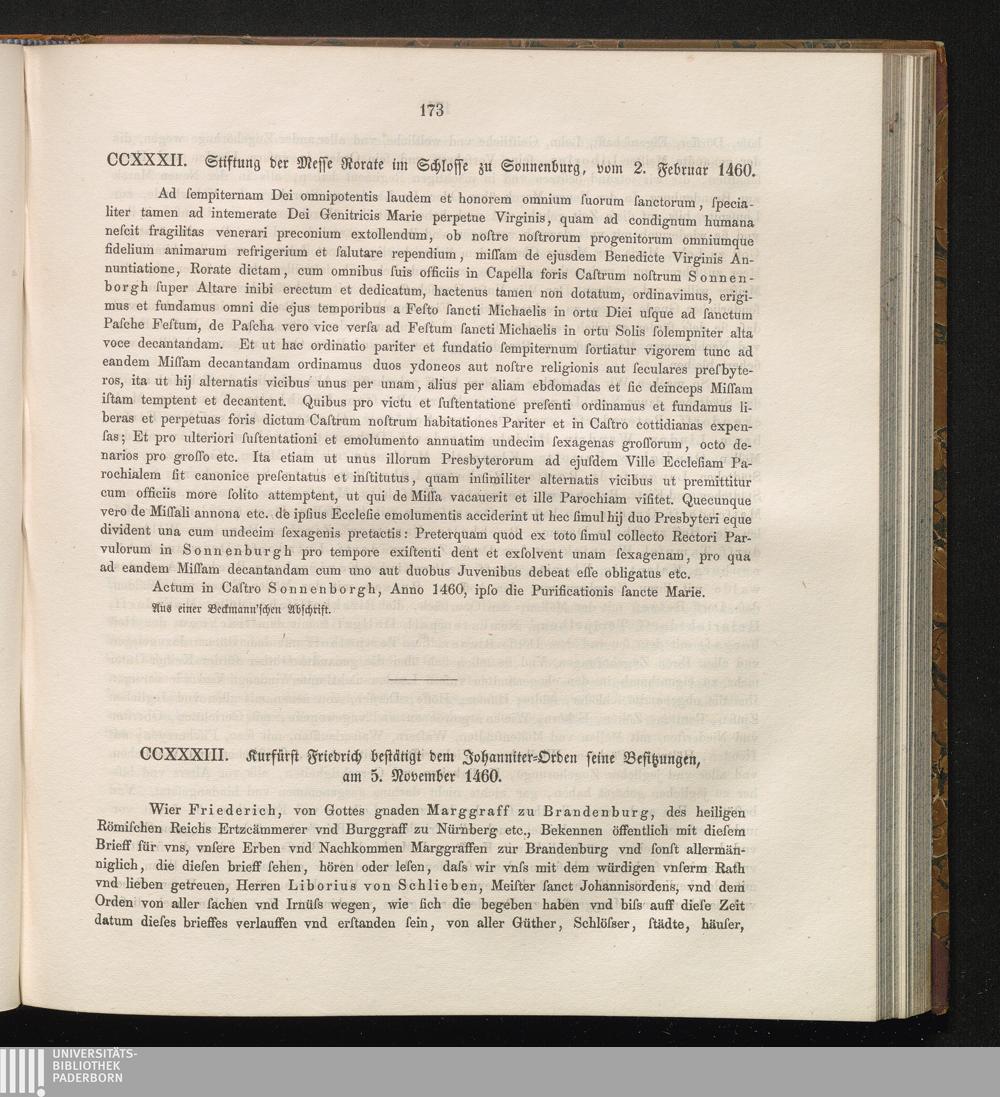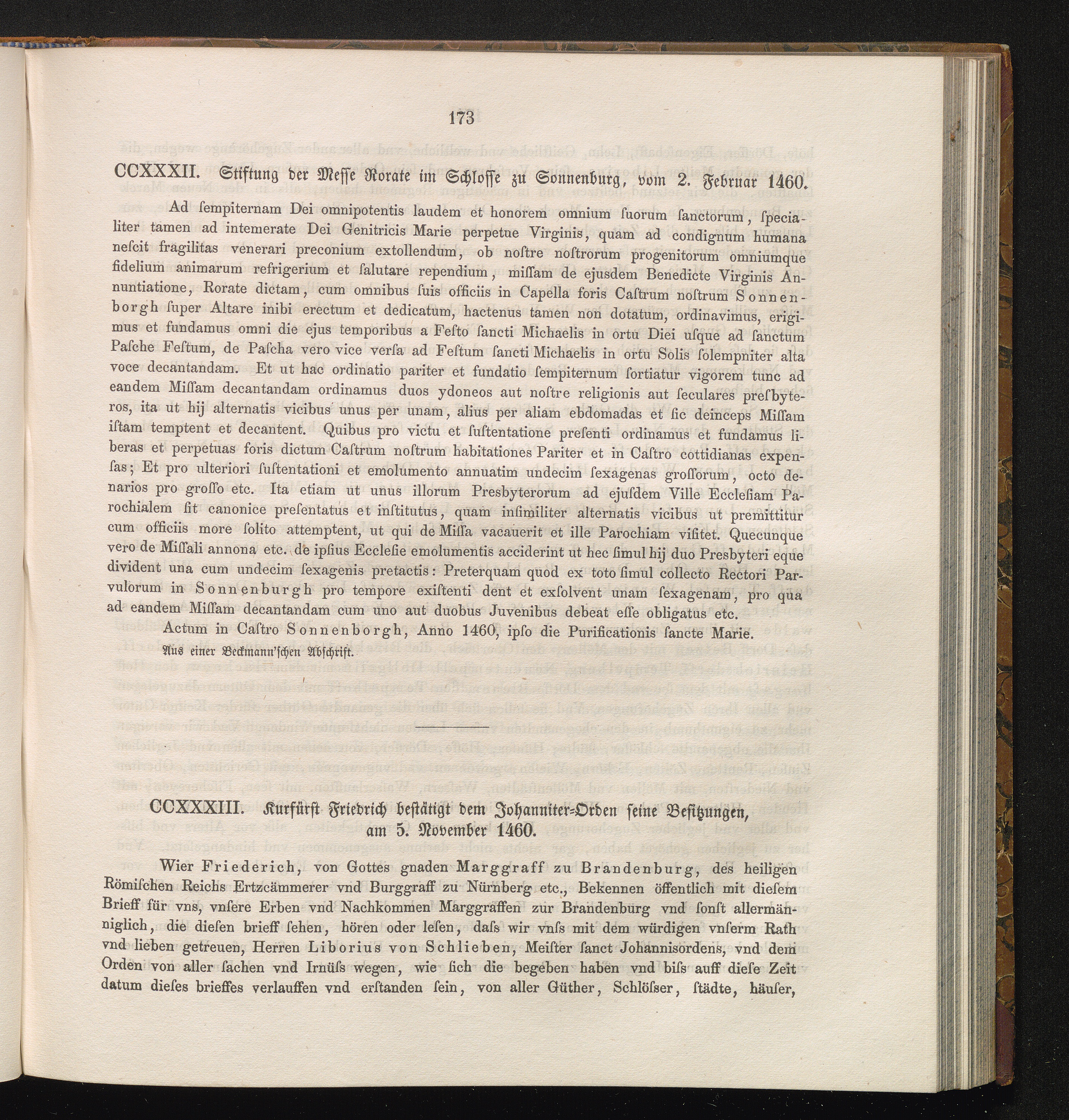 CCXXXIII. Kurfürst Friedrich bestätigt dem Johanniter-Orden seine Besitzungen, am[...]