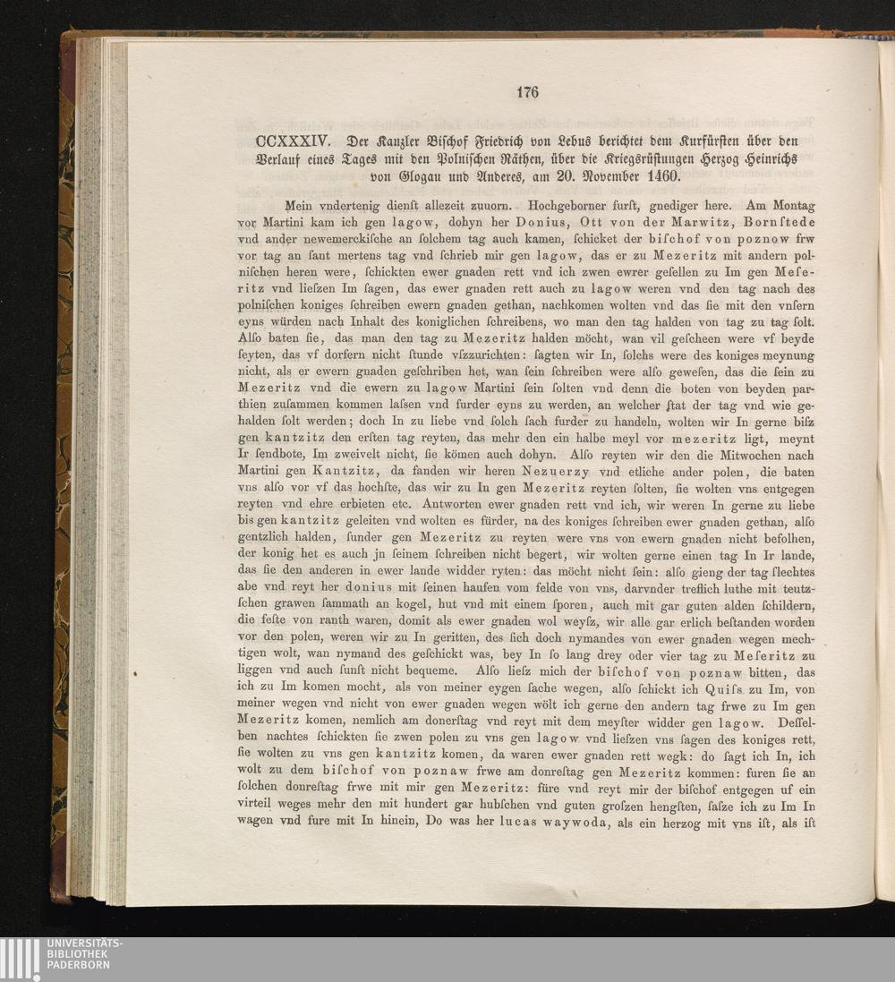 CCXXXIV. Der Kanzler Bischof Friedrich von Lebus berichtet dem Kurfürsten über den[...]