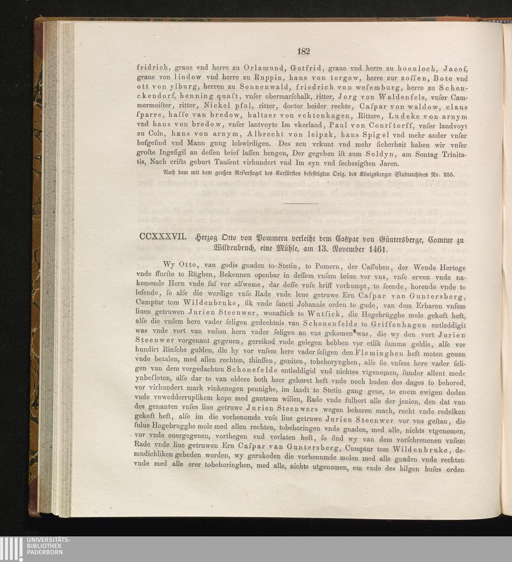 CCXXXVII. Herzog Otto von Pommern verleiht dem Caspar von Güntersberge, Comtur zu[...]