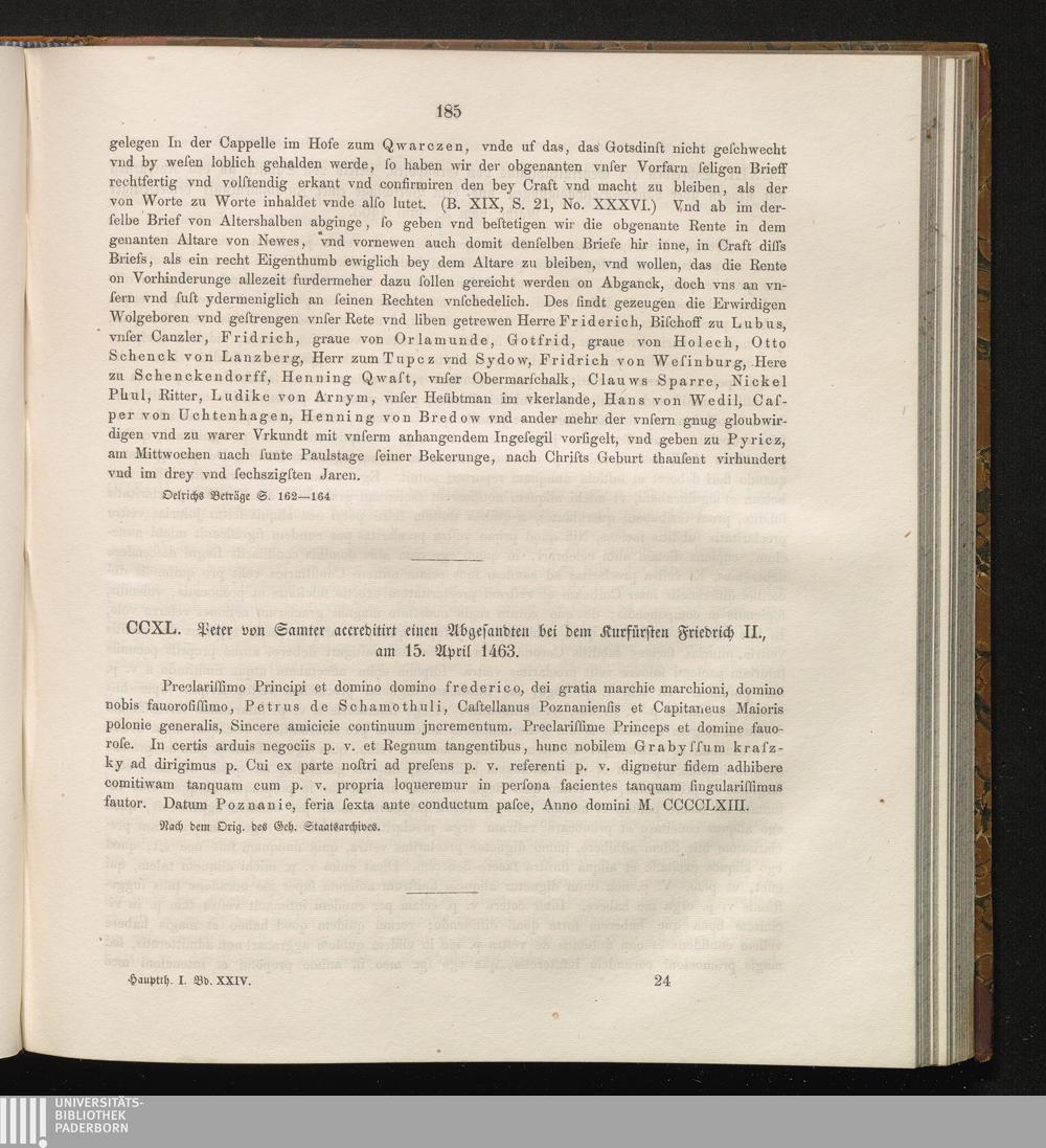 CCXL. Peter von Samter accreditirt einen Abgesandten bei dem Kurfürsten Friedrich[...]