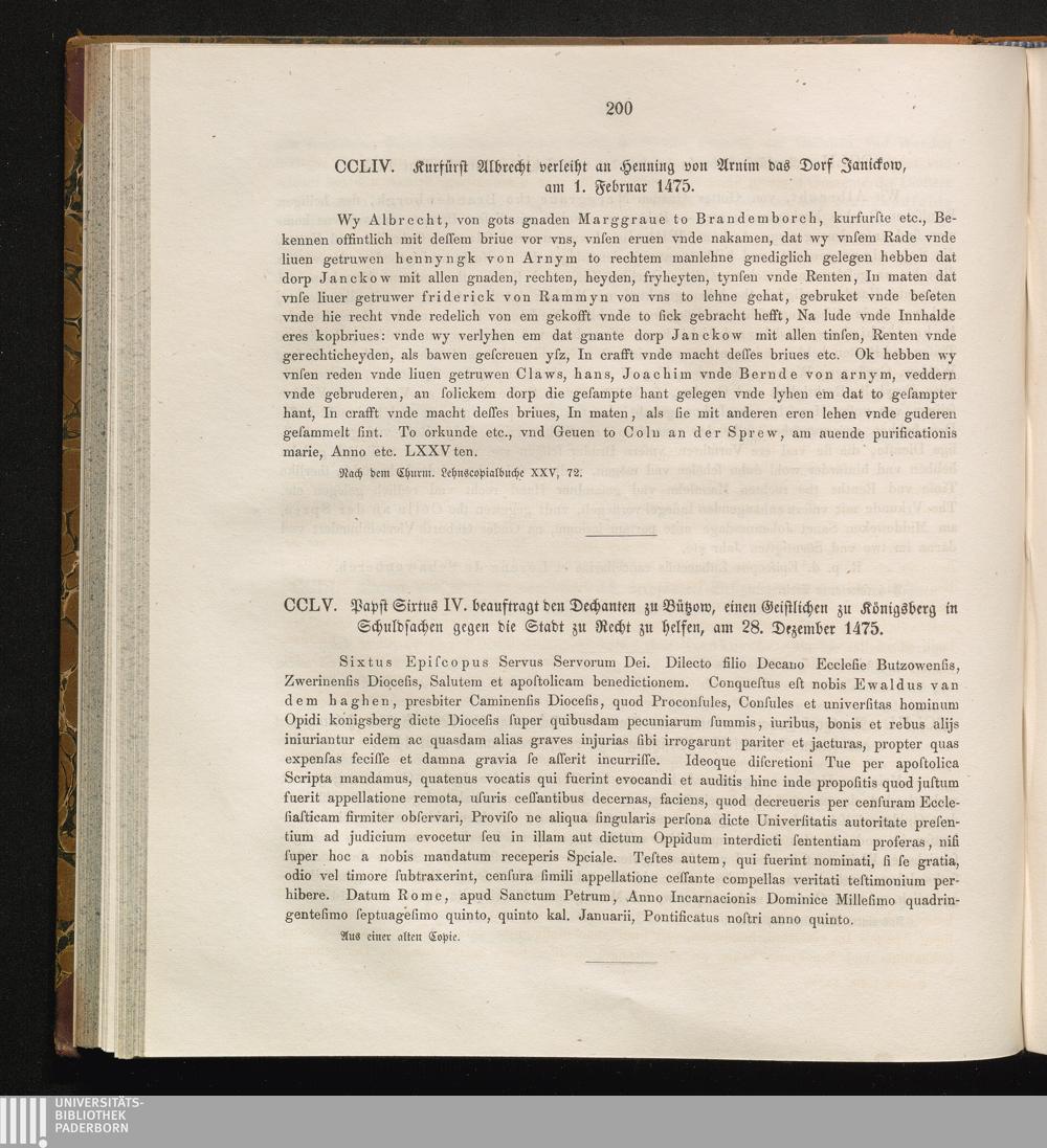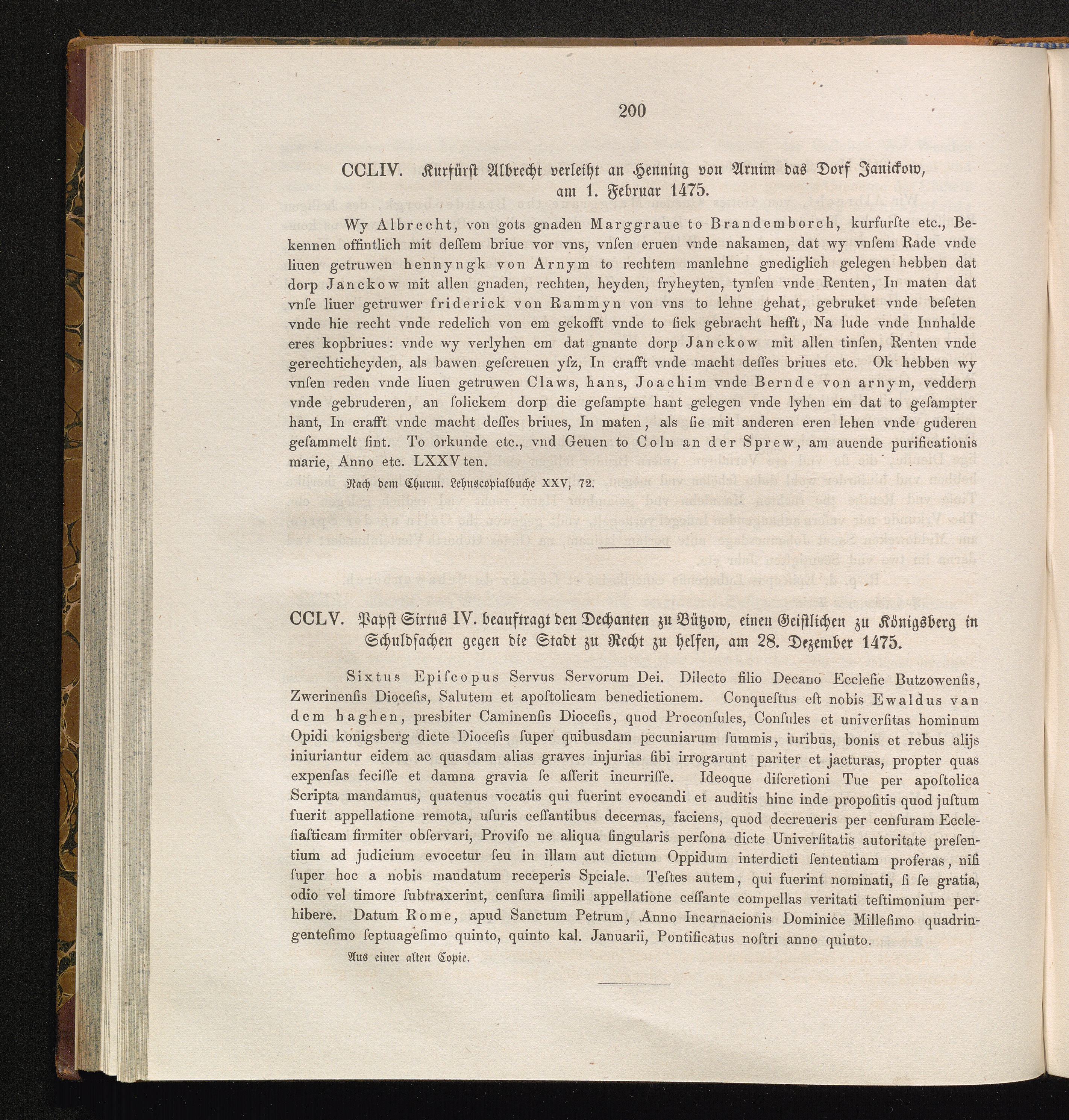CCLV. Papst Sixtus IV. beauftragt den Dechanten zu Bützow, einen Geistlichen zu Königsberg[...]
