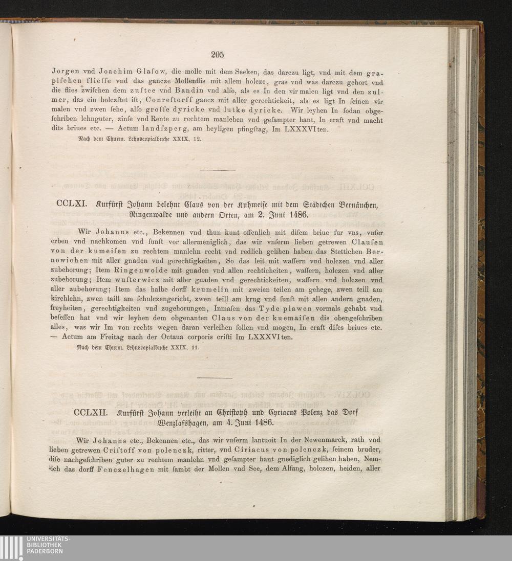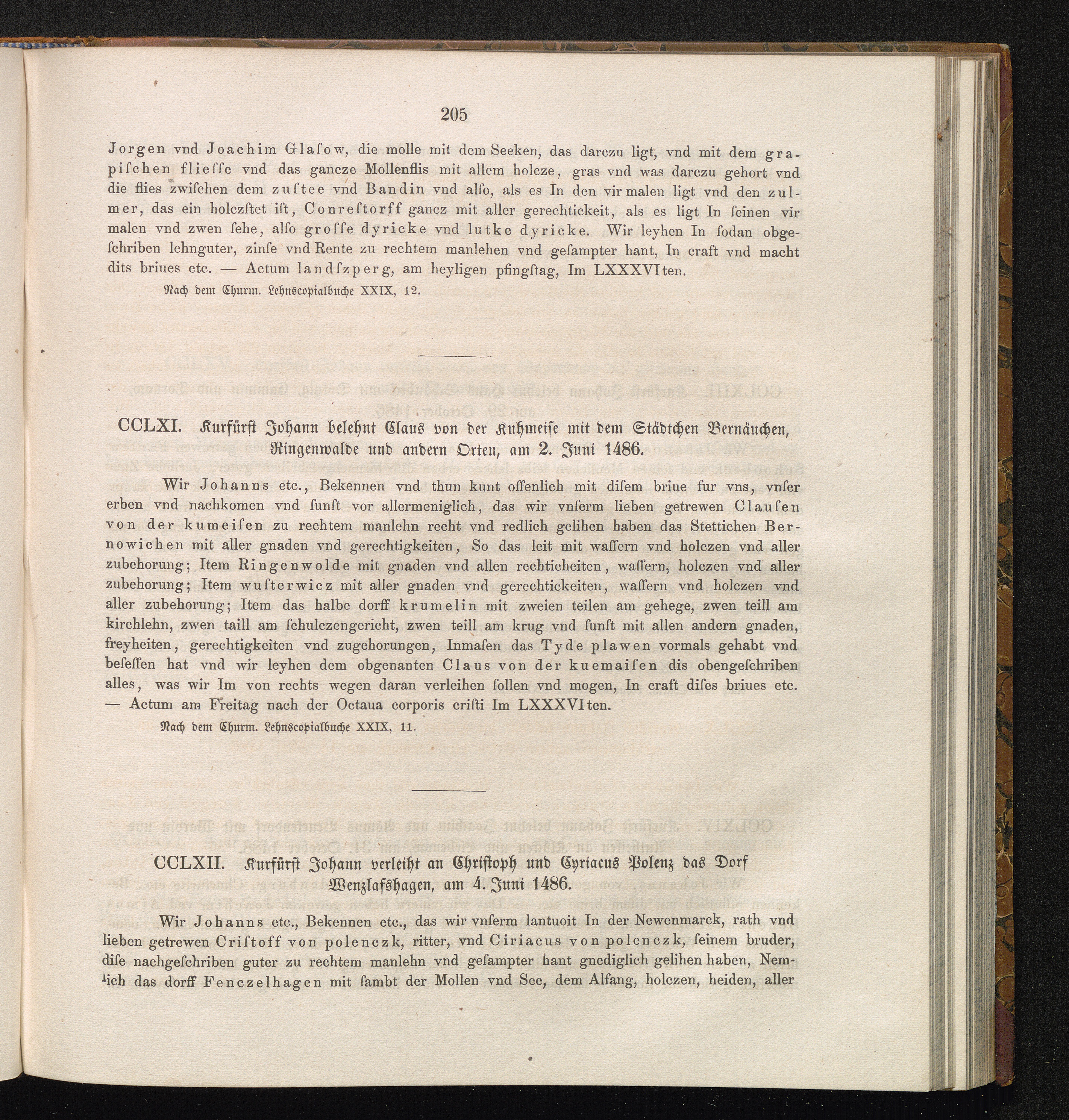 CCLXII. Kurfürst Johann verleiht an Christoph und Cyriacus Polenz das Dorf Wenzlafshagen,[...]