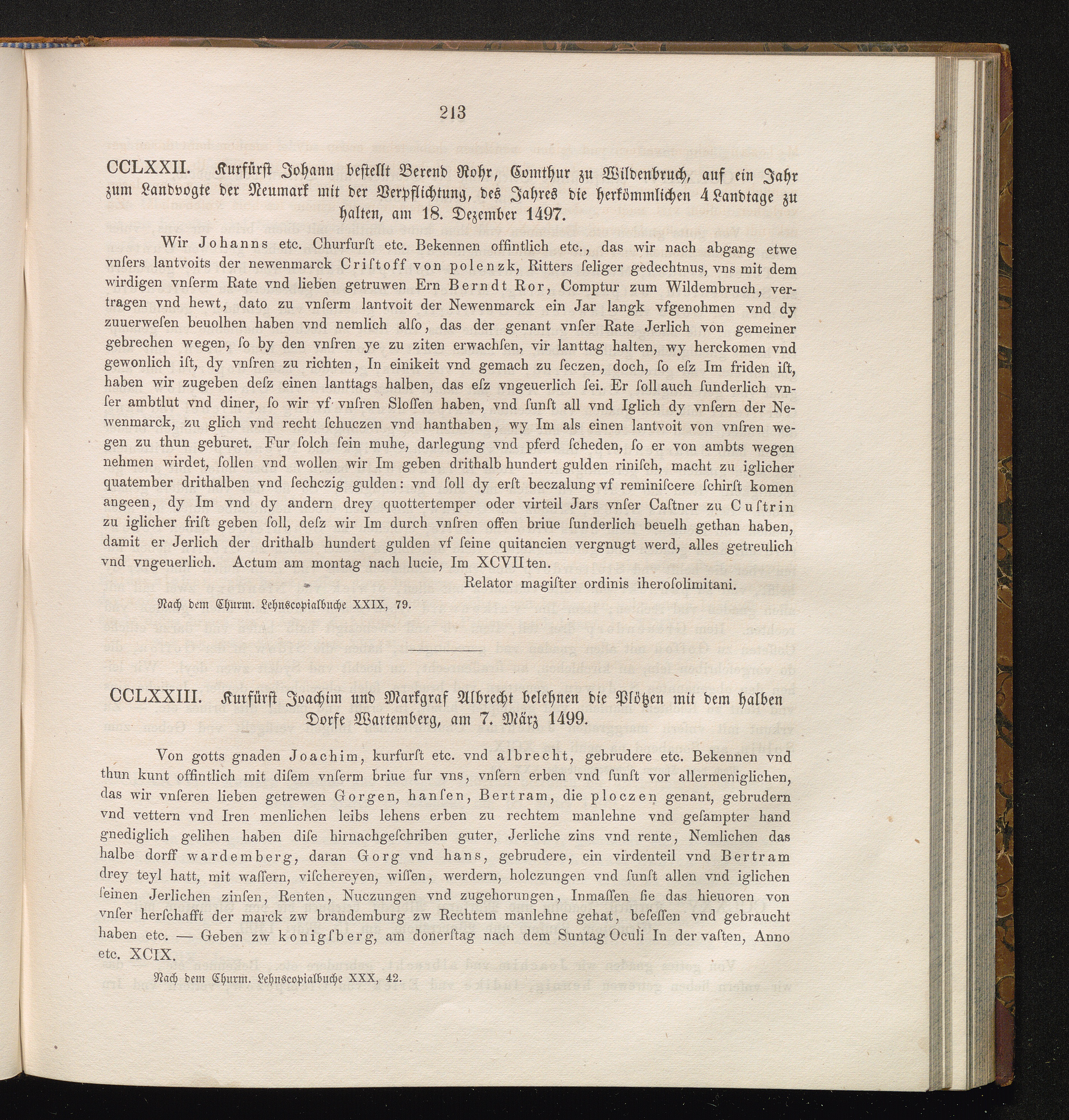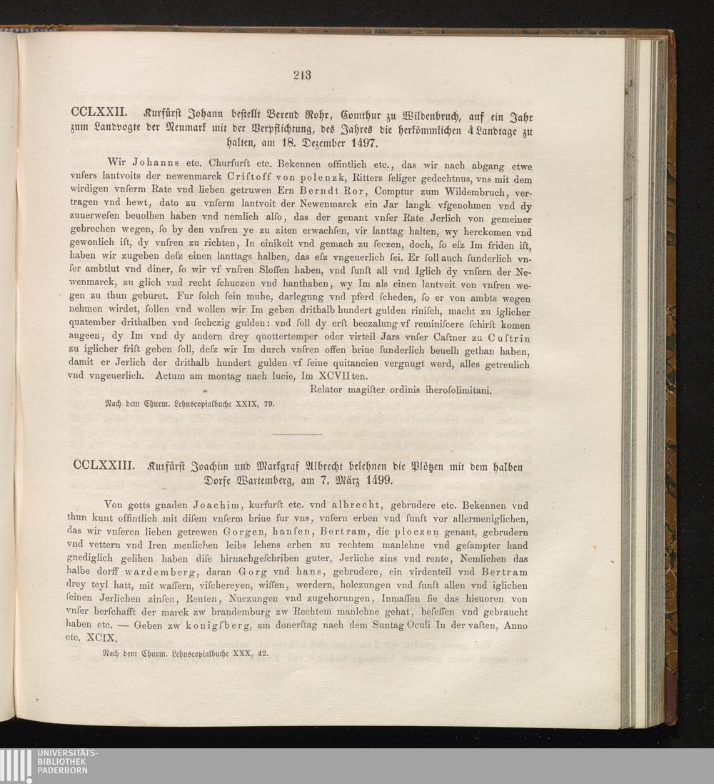 CCLXXIII. Kurfürst Joachim und Markgraf Albrecht belehnen die Plötzen mit dem halben[...]