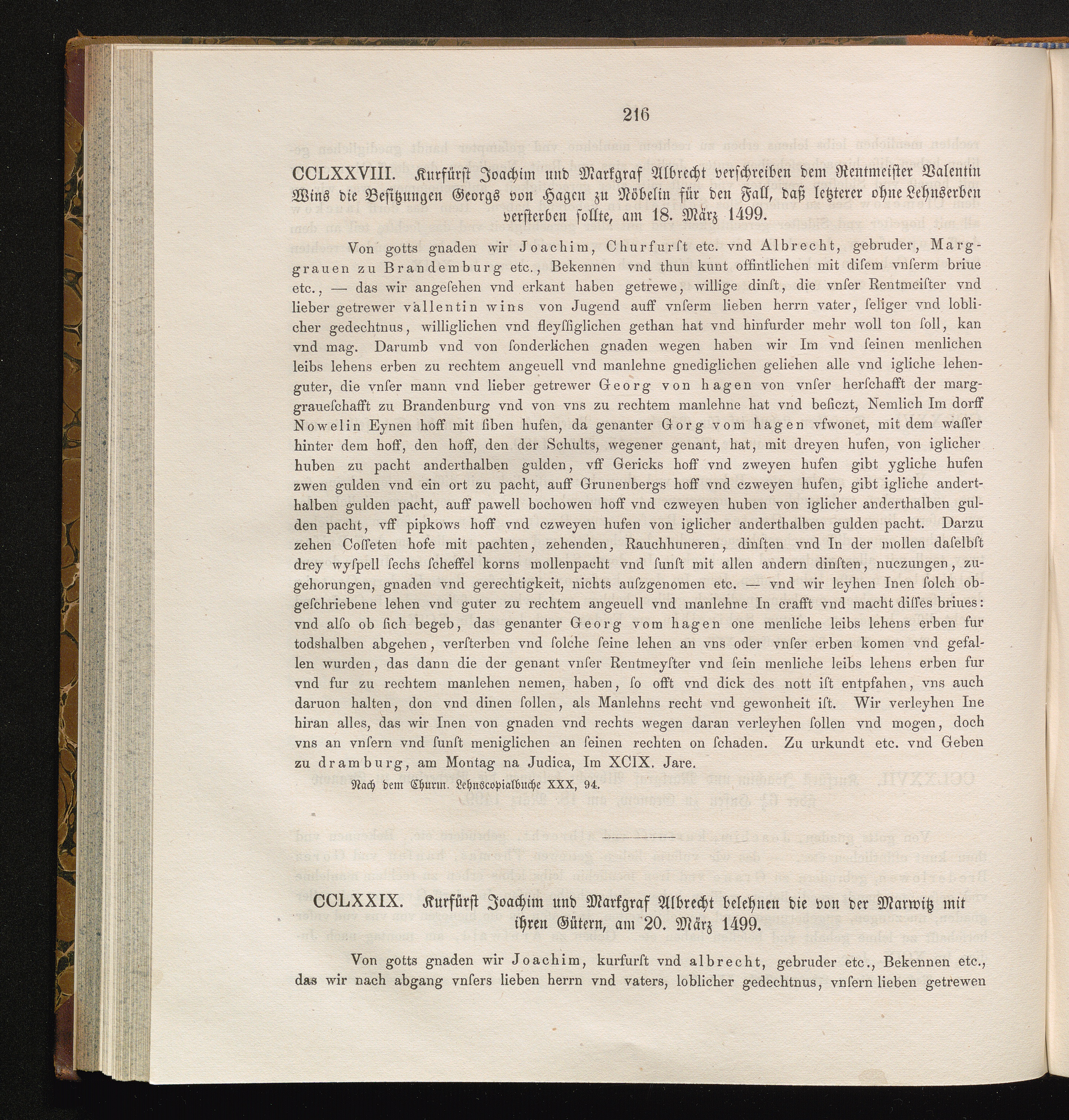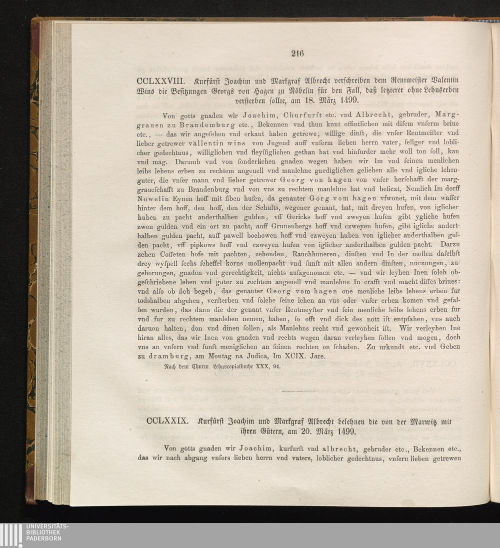 CCLXXIX. Kurfürst Joachim und Markgraf Albrecht belehnen die von der Marwitz mit[...]
