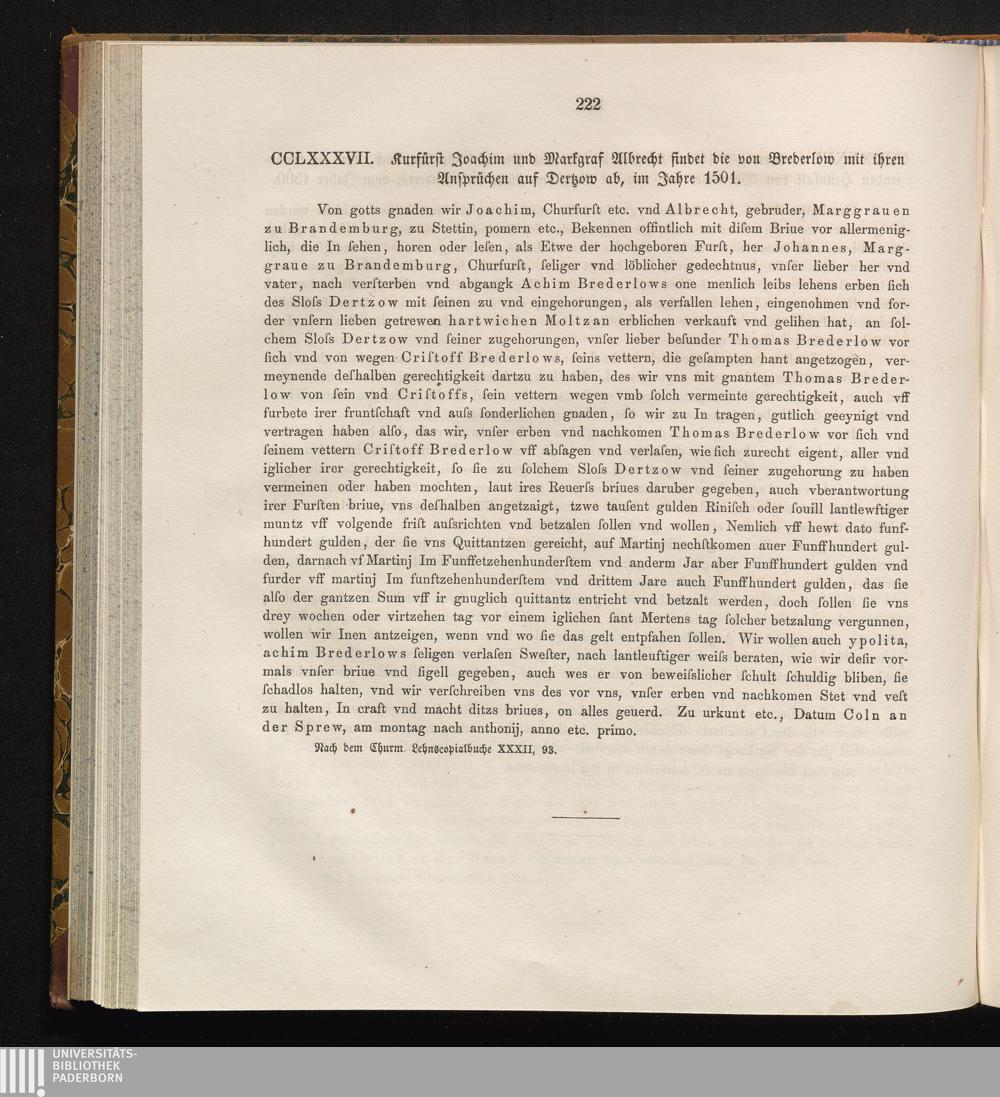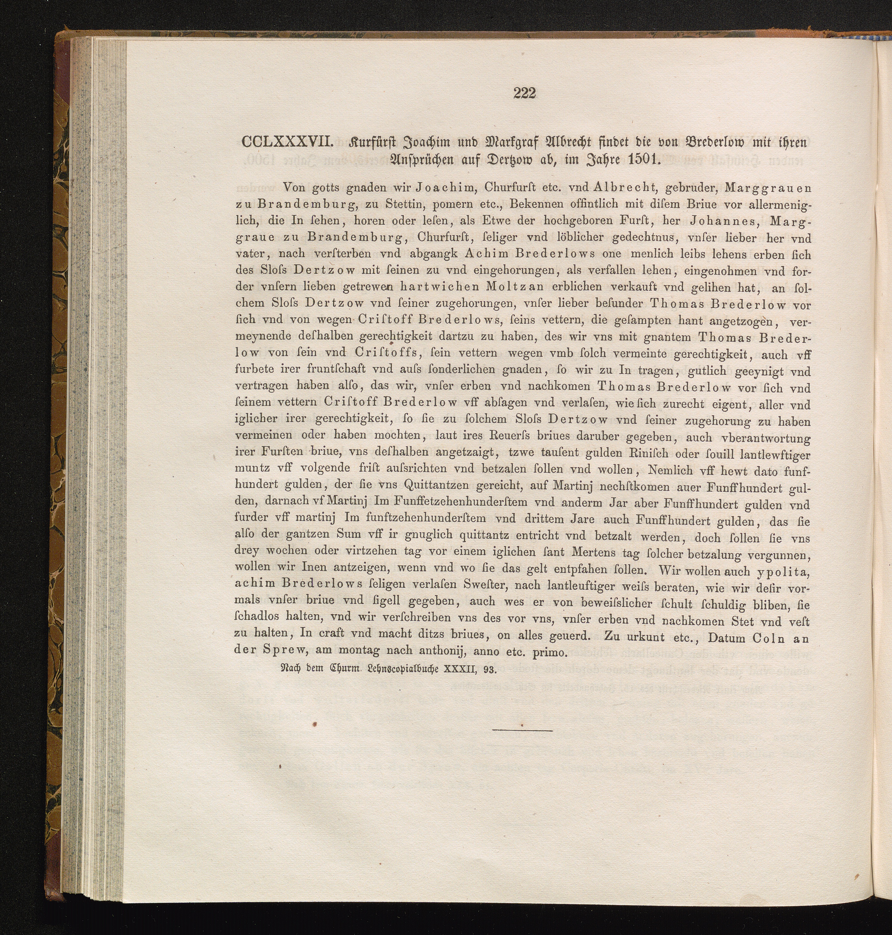 CCLXXXVII. Kurfürst Joachim und Markgraf Albrecht findet die von Brederlow mit ihren[...]