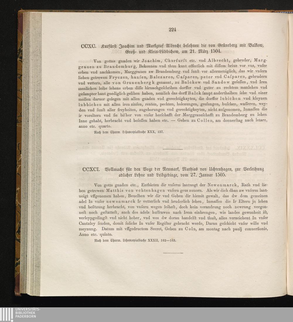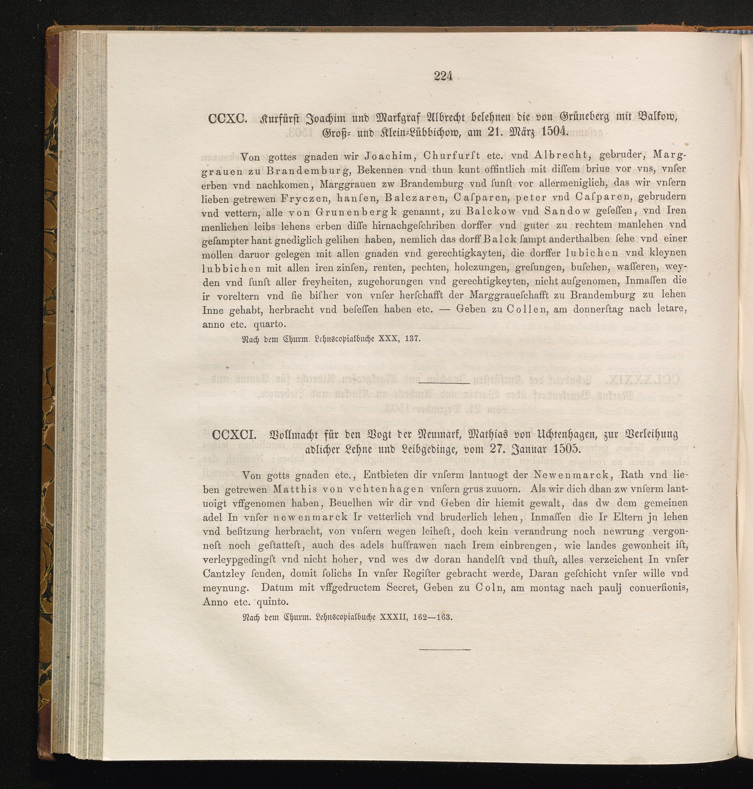 CCXCI. Vollmacht für den Vogt der Neumark, Mathias von Uchtenhagen, zur Verleihung[...]