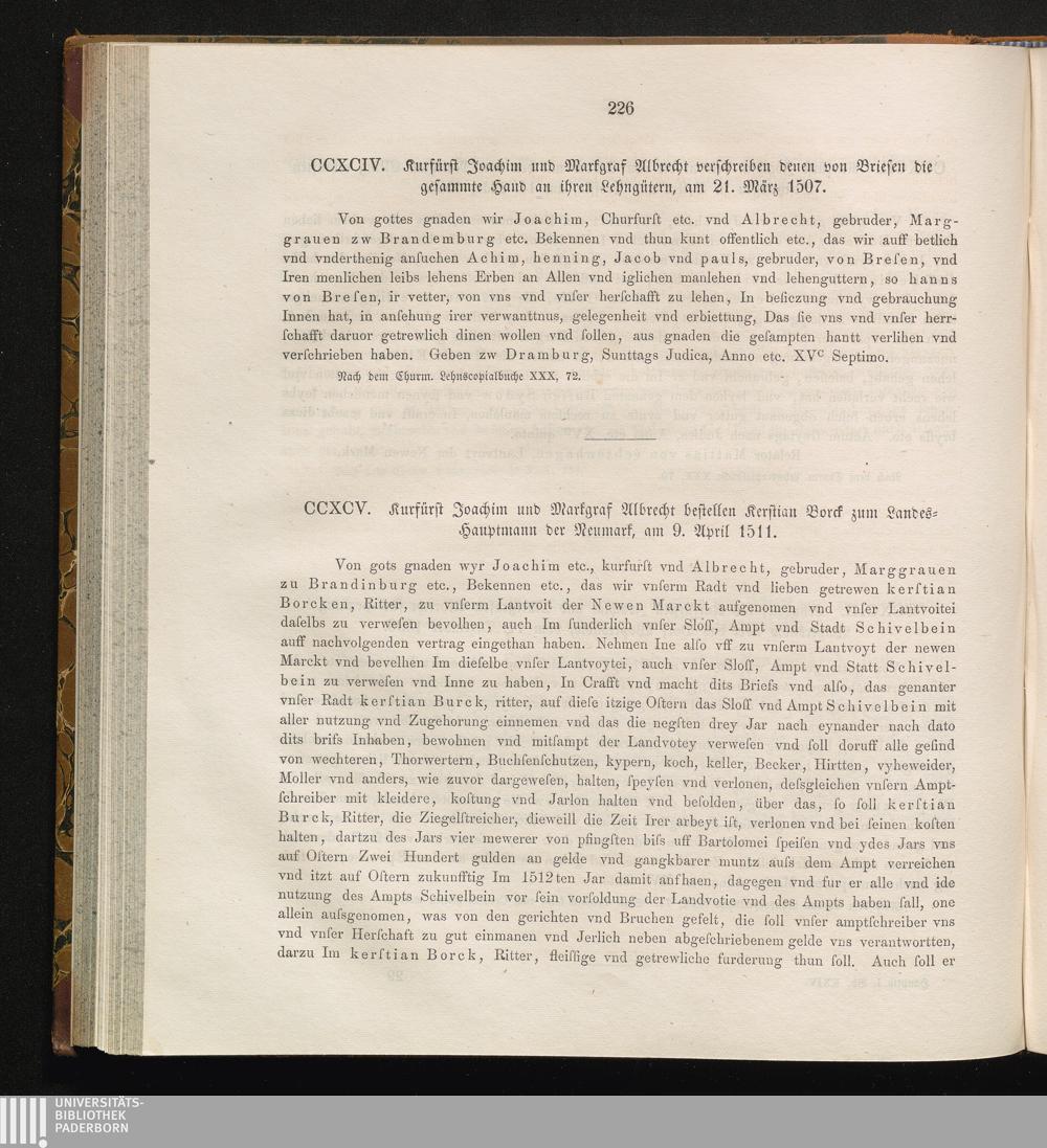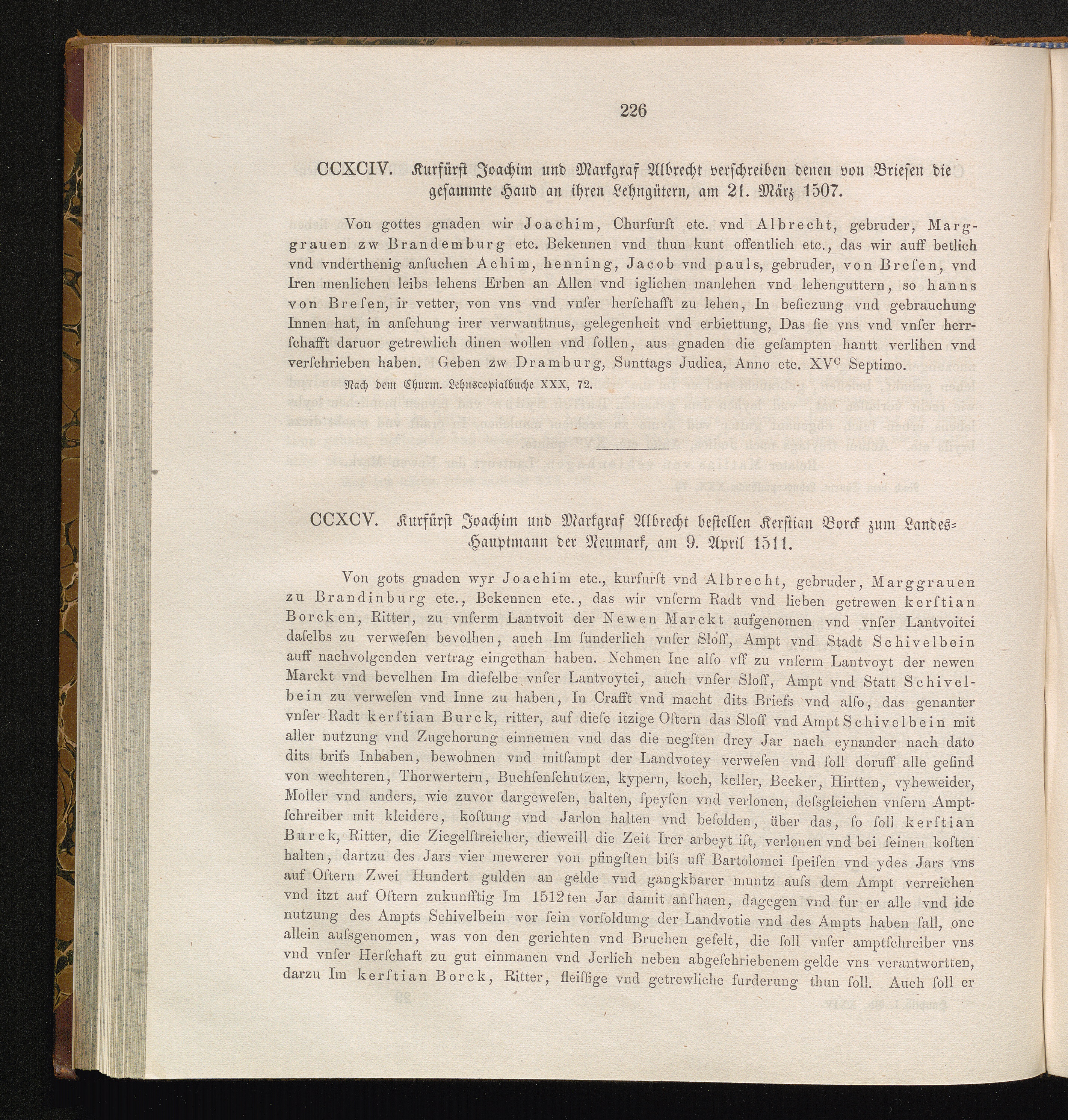 CCXCV. Kurfürst Joachim und Markgraf Albrecht bestellen Kerstian Borck zum Landes-Hauptmann[...]