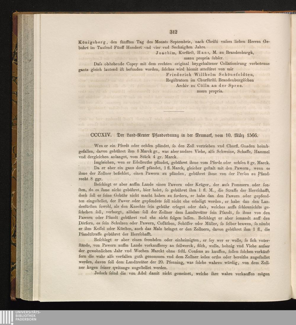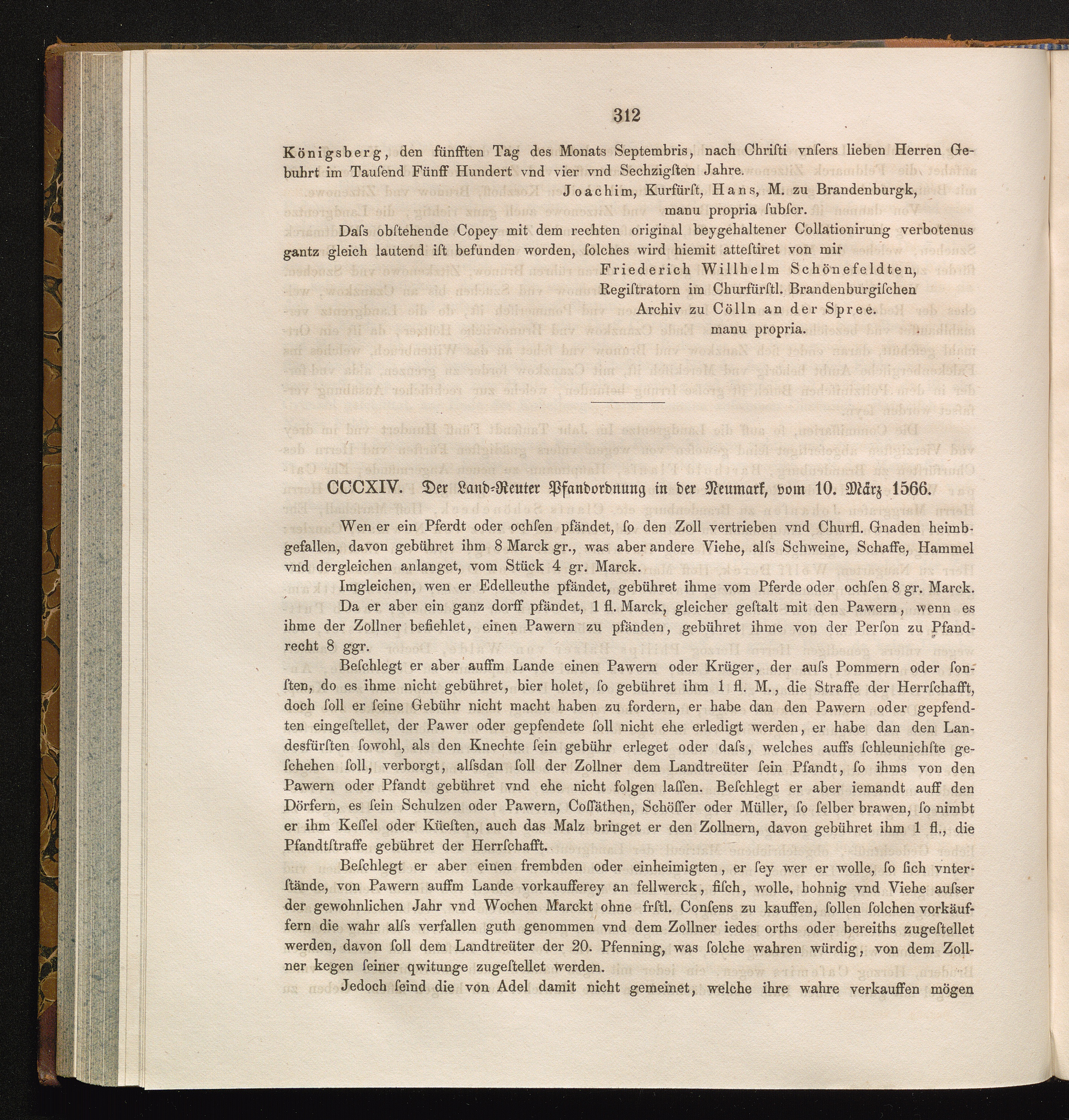 CCCXIV. Der Land-Reuter Pfandordnung in der Neumark, vom 10. März 1566.