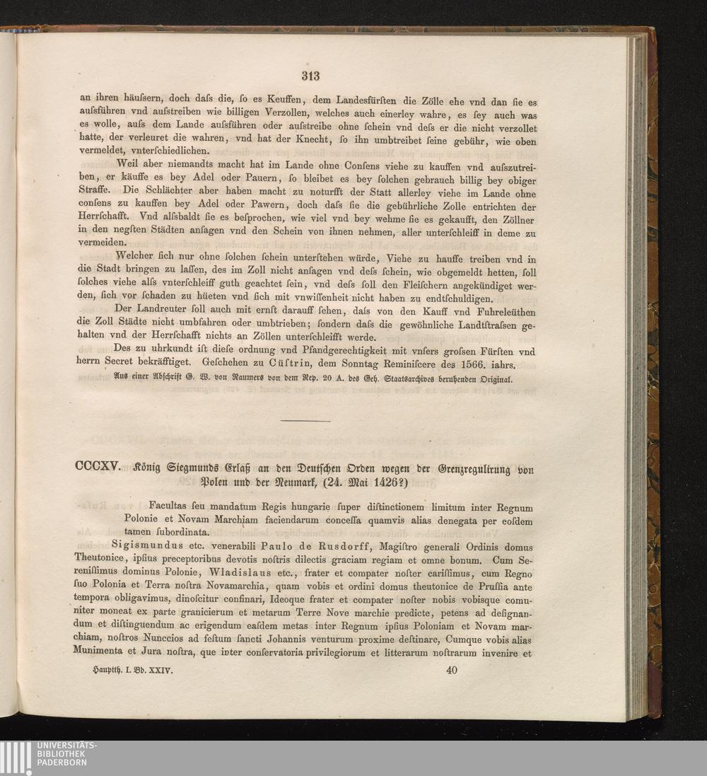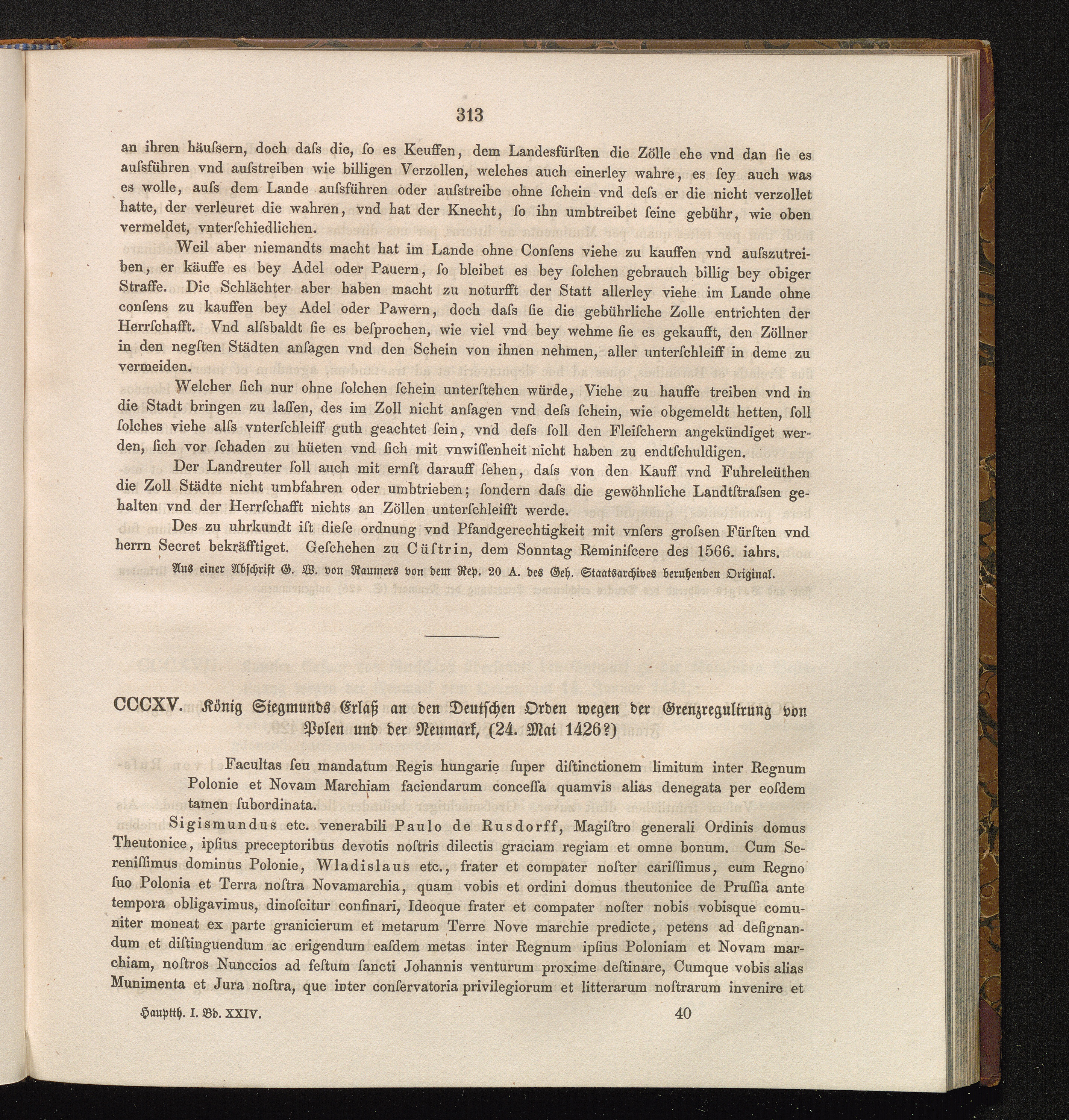 CCCXV. König Siegmunds Erlaß an den Deutschen Orden wegen der Grenzregulirung von[...]