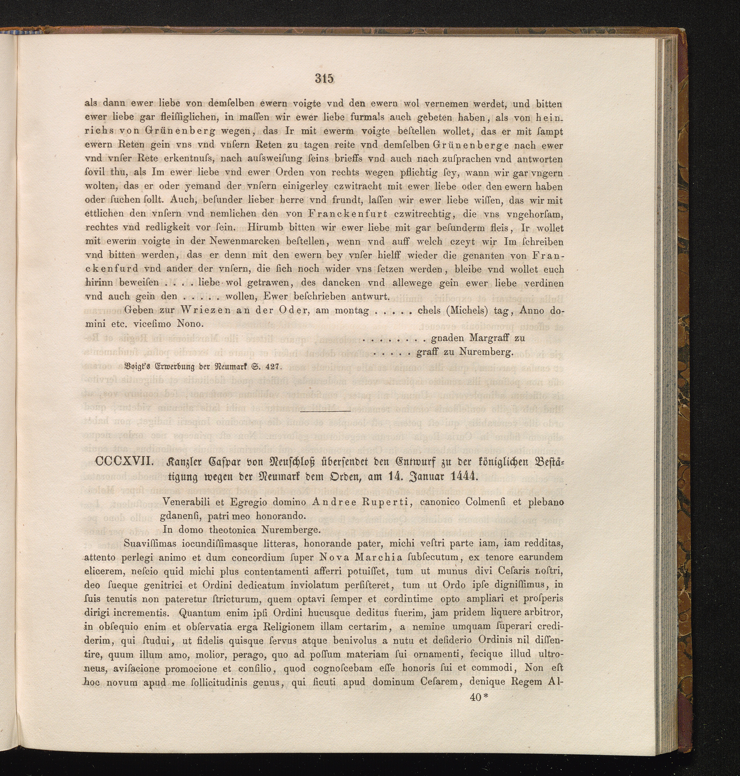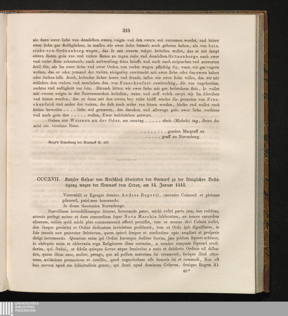CCCXVII. Kanzler Caspar von Neuschloß übersendet den Entwurf zu der königlichen Bestätigung[...]