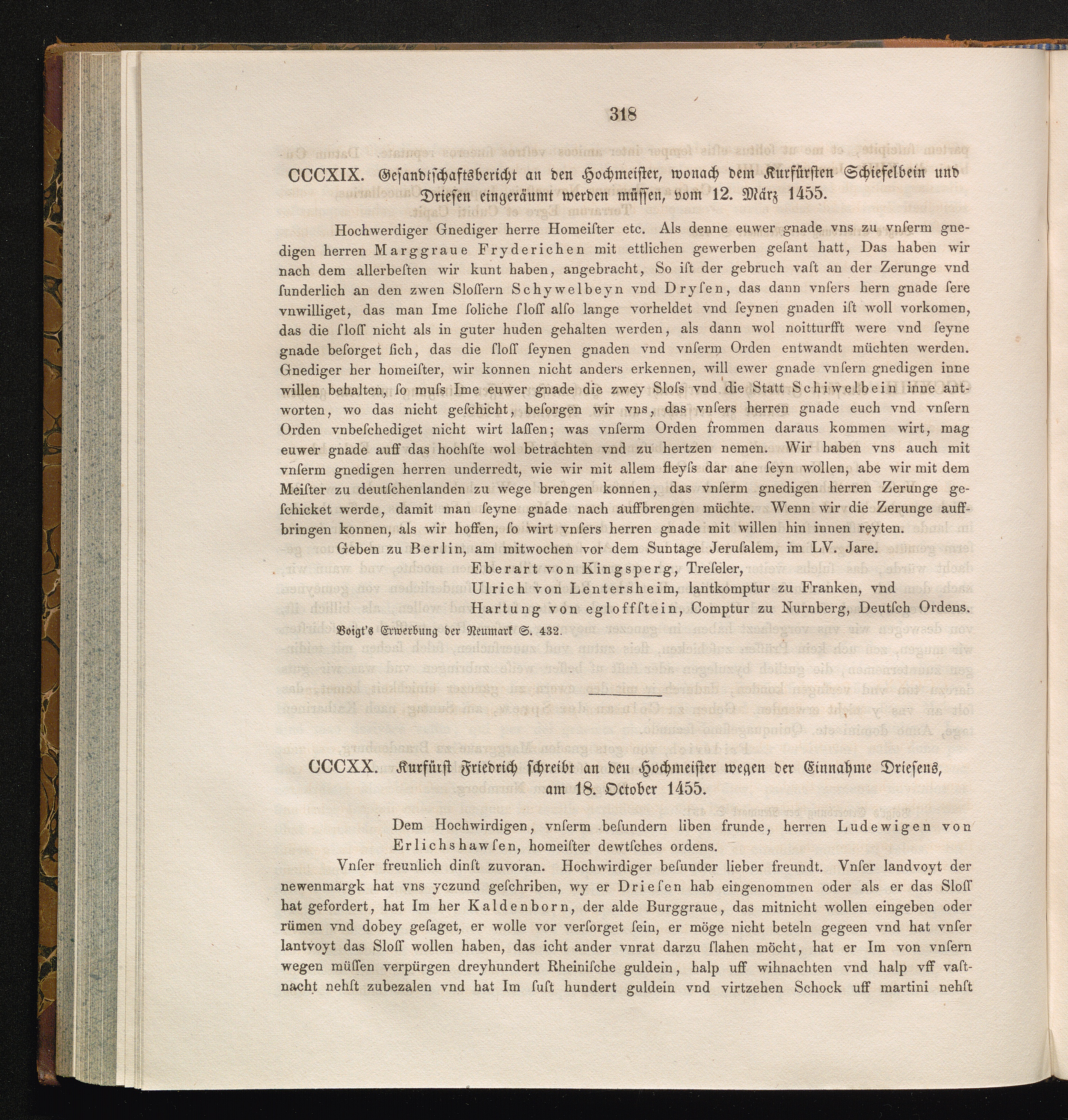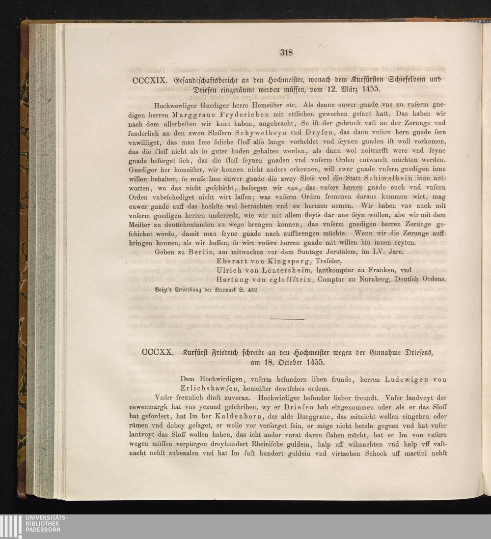 CCCXX. Kurfürst Friedrich schreibt an den Hochmeister wegen der Einnahme Driesens,[...]
