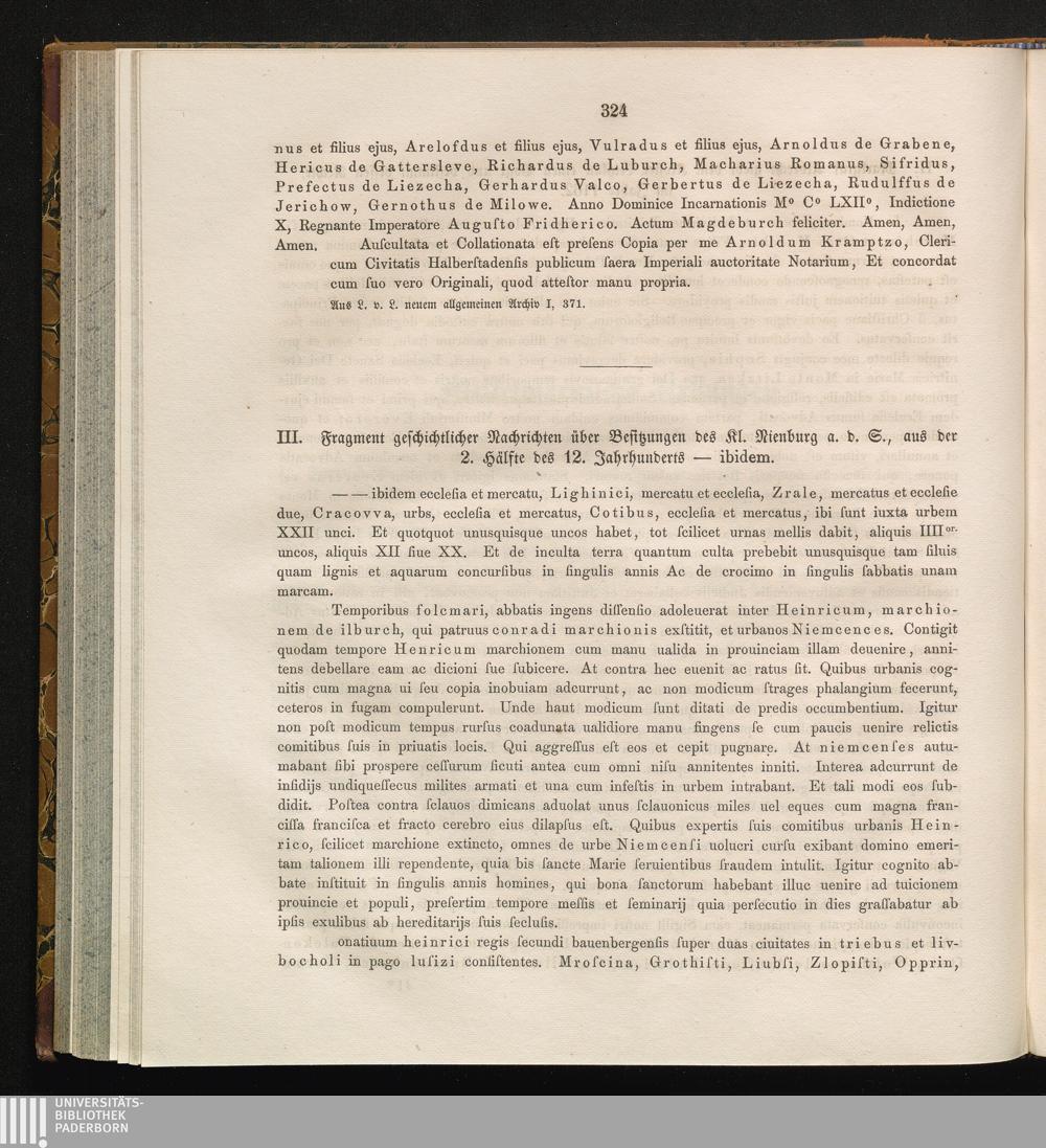 III. Fragment geschichtlicher Nachrichten über Besitzungen des Kl. Nienburg a. d.[...]