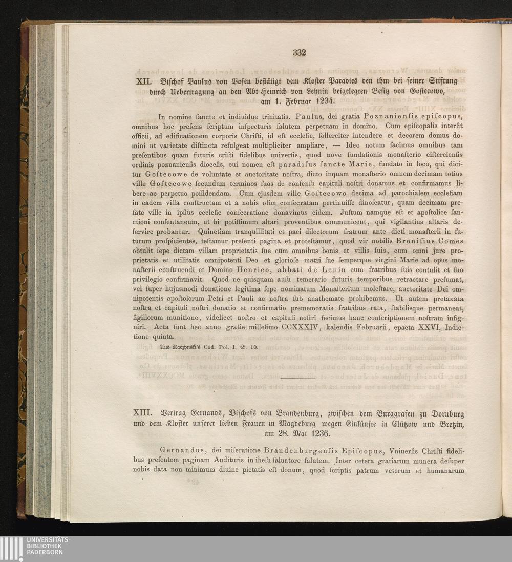 XIII. Vertrag Gernands, Bischofs von Brandenburg, zwischen dem Burggrafen zu Dornburg[...]