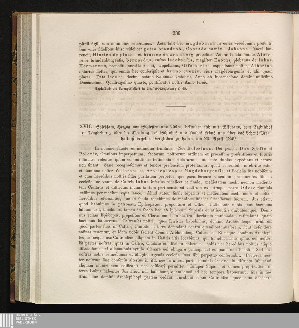 XVII. Boleslaw, Herzog von Schlesien und Polen, bekundet, sich mit Wilbrand, dem[...]