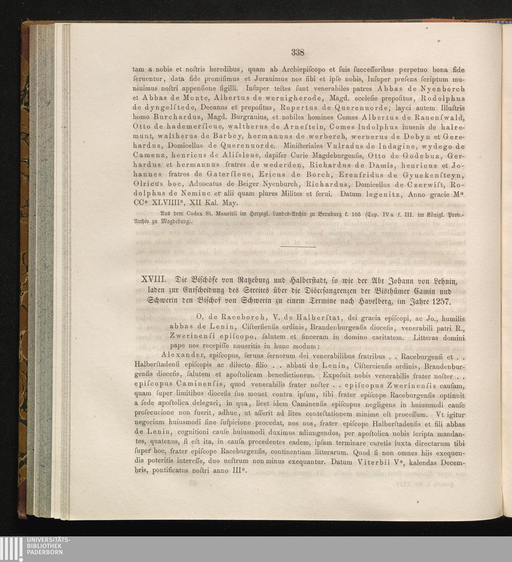 XVIII. Die Bischöfe von Ratzeburg und Halberstadt, so wie der Abt Johann von Lehnin,[...]