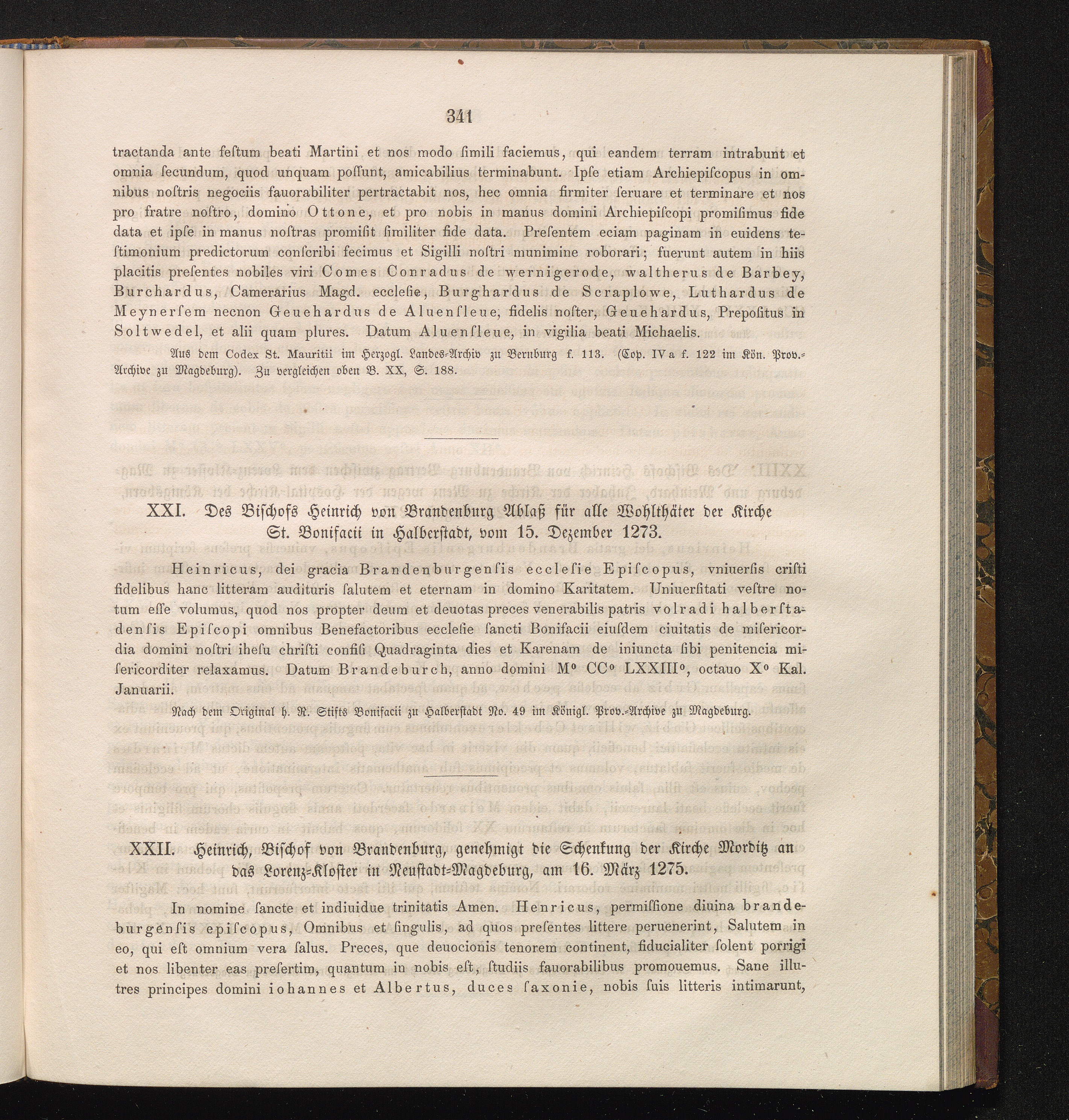 XXII. Heinrich, Bischof von Brandenburg, genehmigt die Schenkung der Kirche Morditz[...]