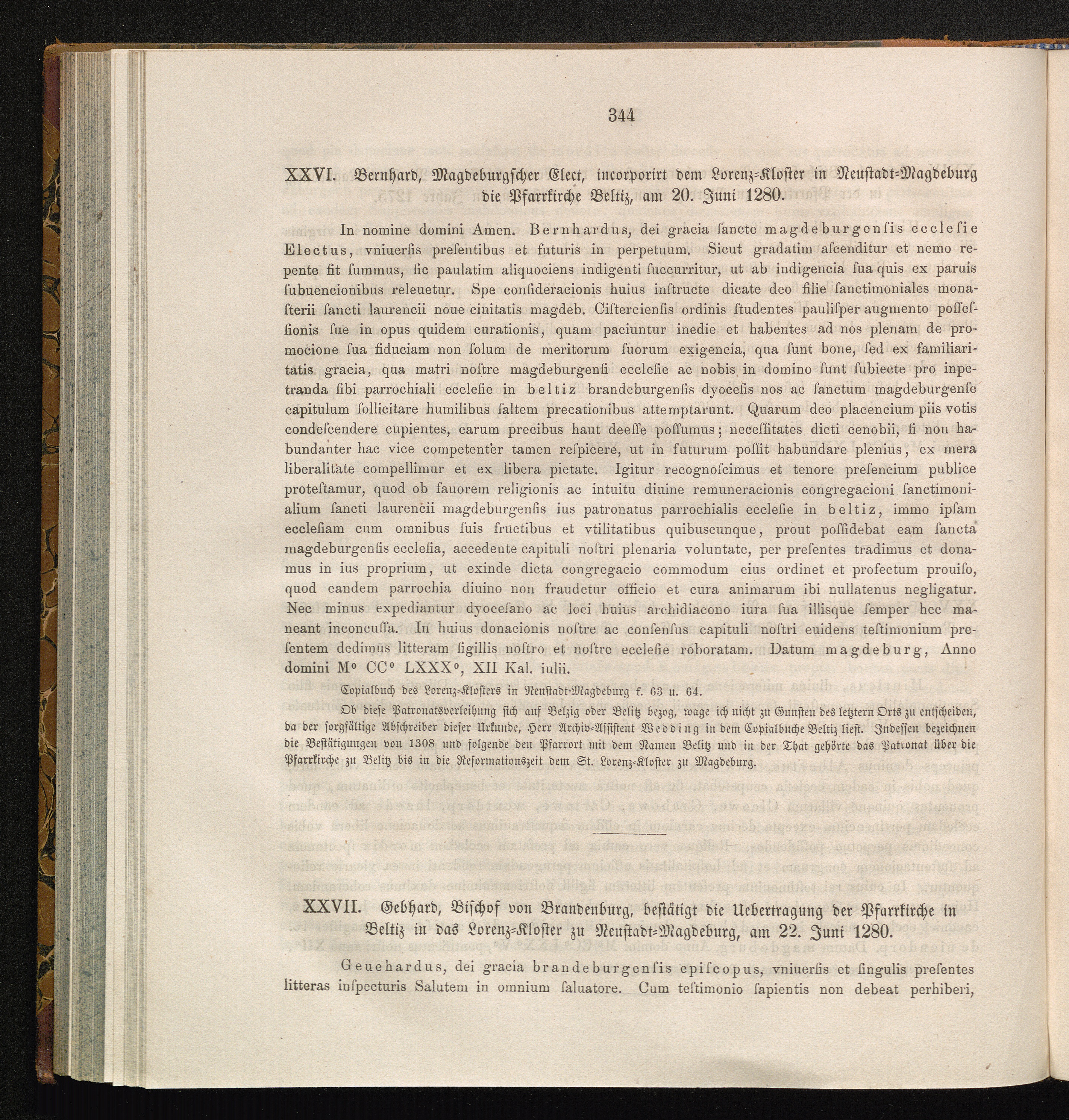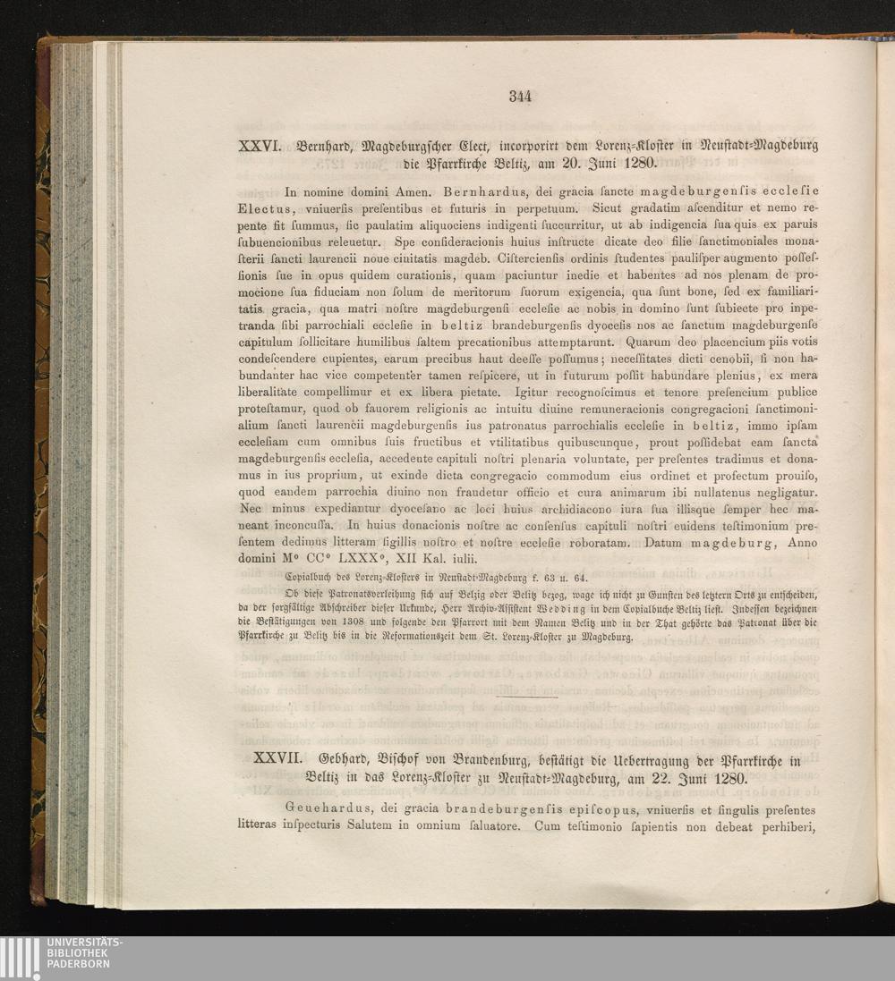 XXVII. Gebhard, Bischof von Brandenburg, bestätigt die Uebertragung der Pfarrkirche[...]