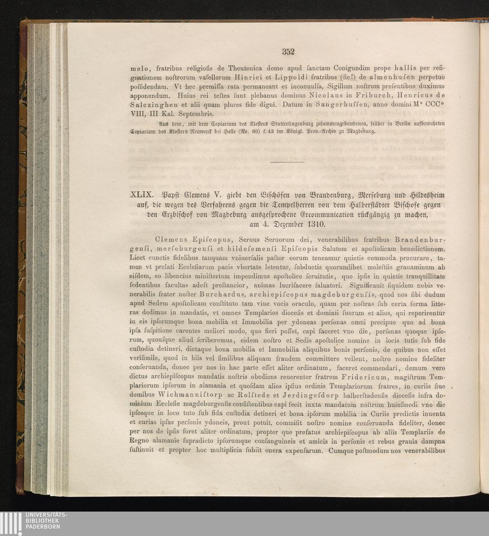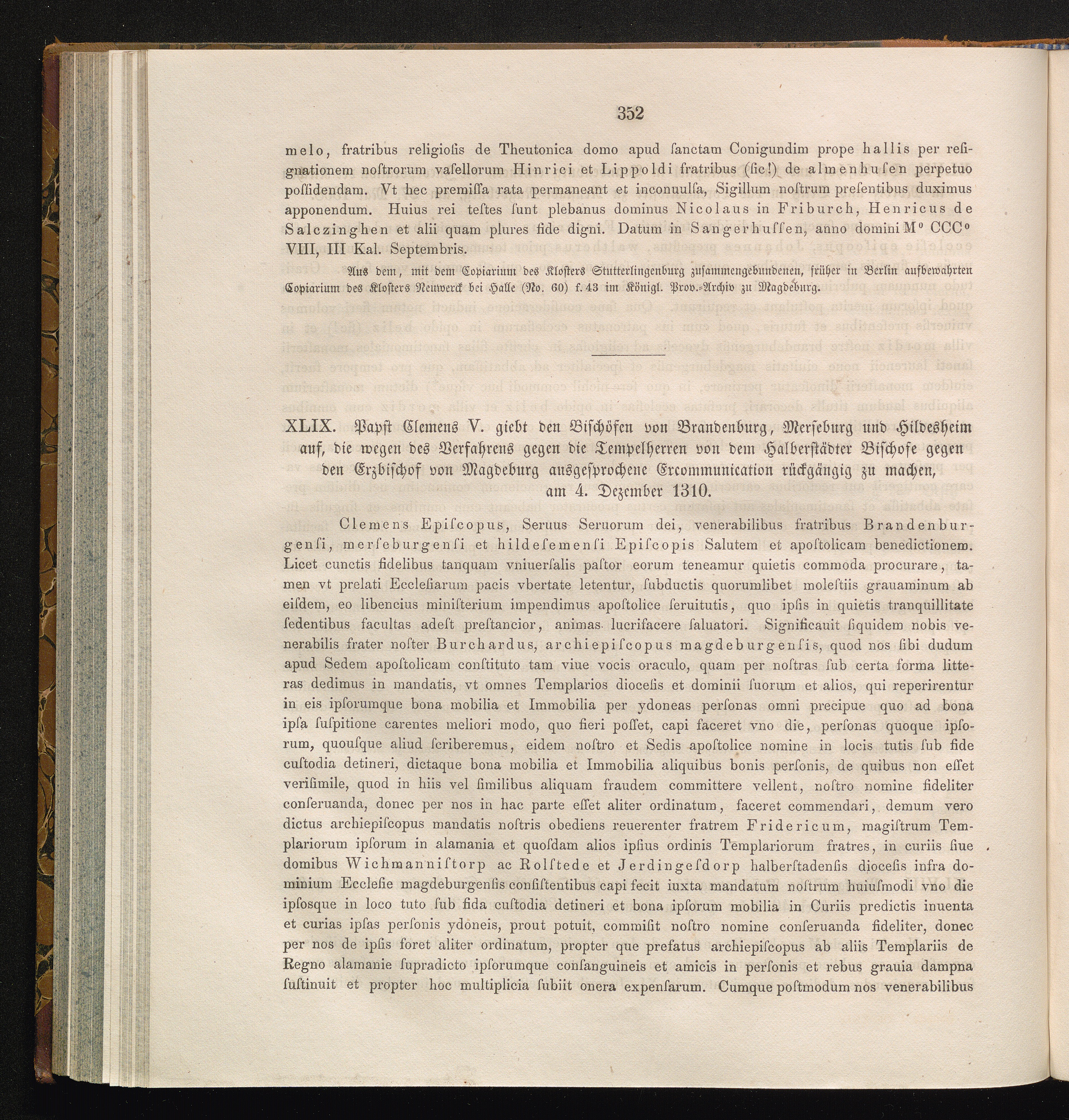 XLIX. Papst Clemens V. giebt den Bischöfen von Brandenburg, Merseburg und Hildesheim[...]
