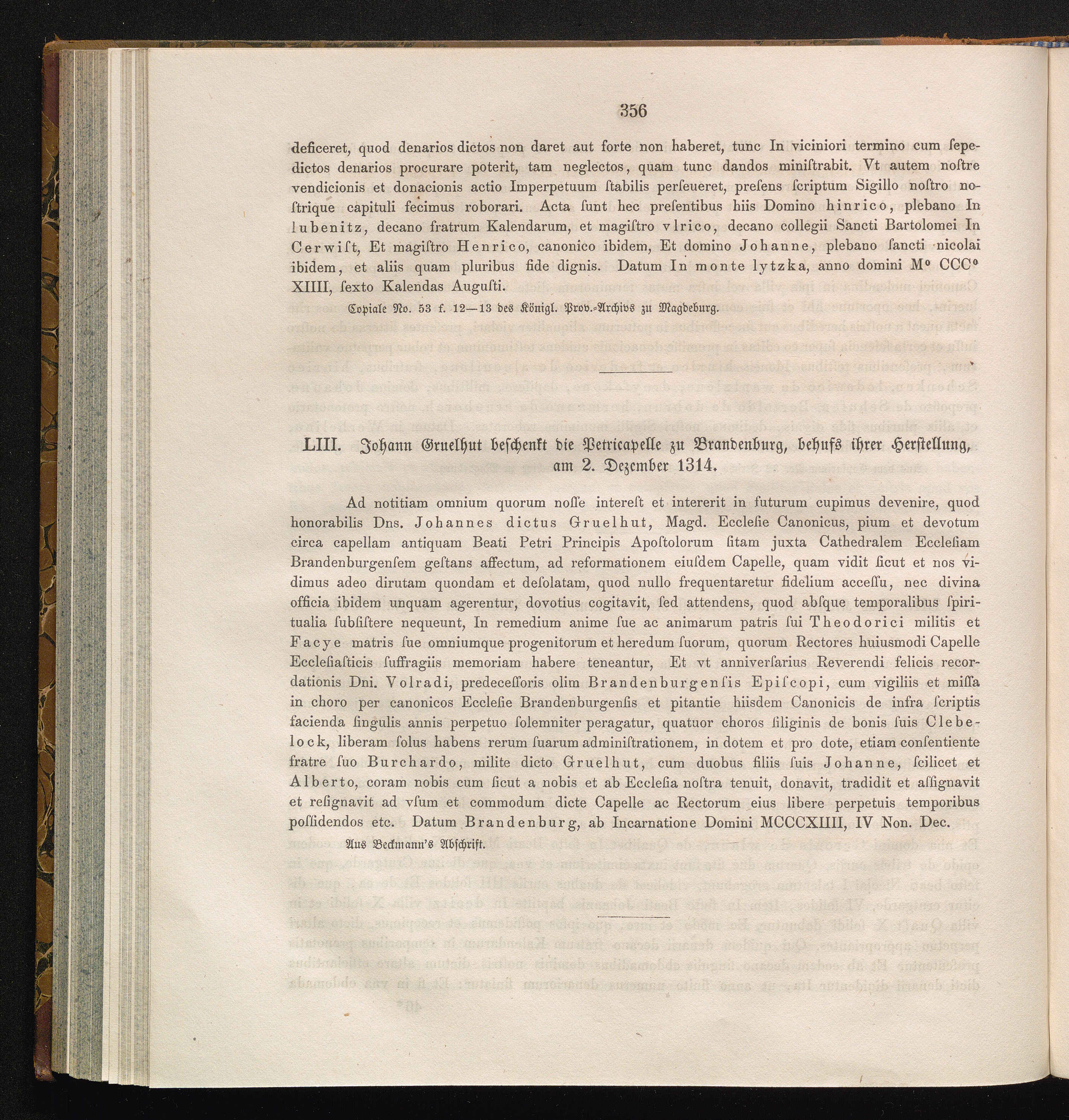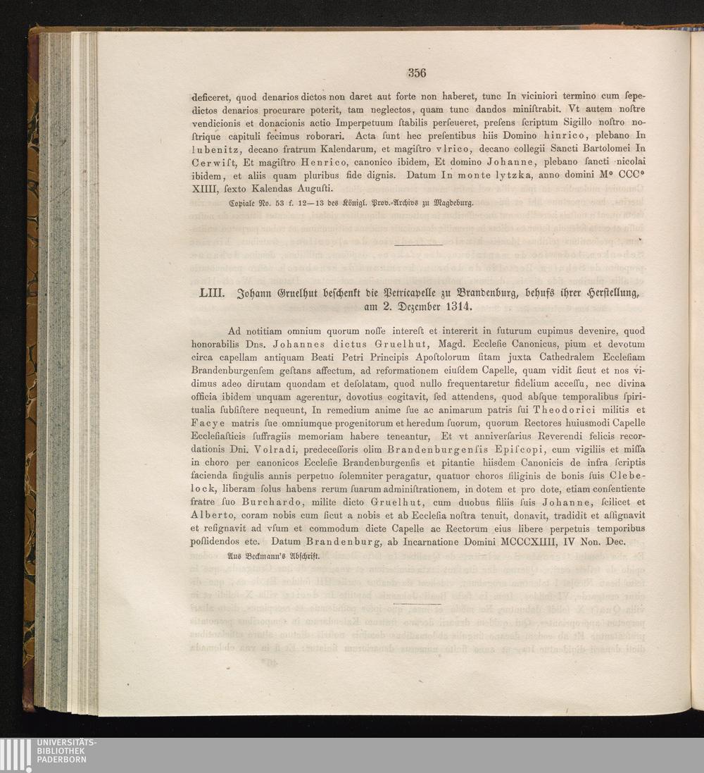 LIII. Johann Gruelhut beschenkt die Petricapelle zu Brandenburg, behufs ihrer Herstellung,[...]
