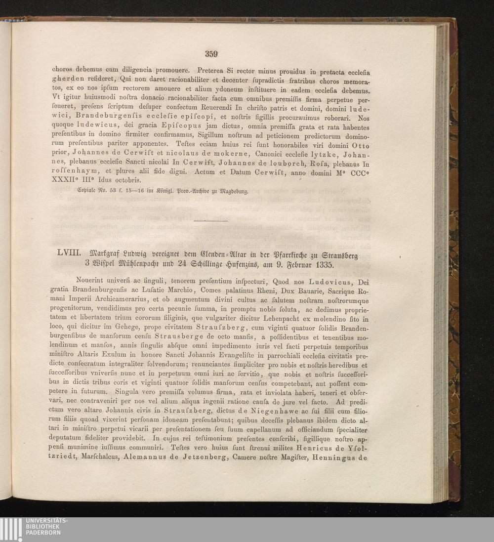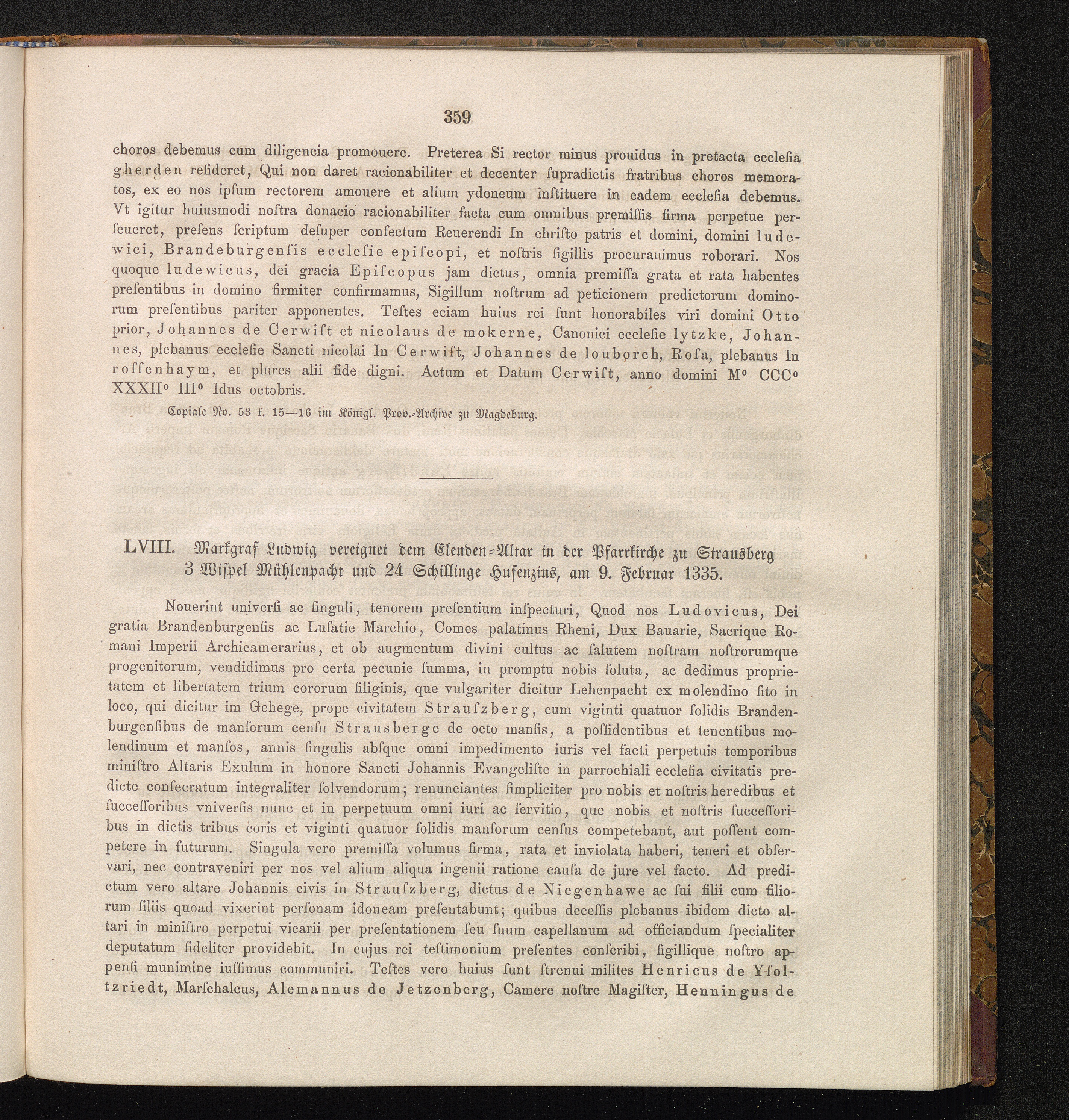 LVIII. Markgraf Ludwig vereignet dem Elenden-Altar in der Pfarrkirche zu Strausberg[...]