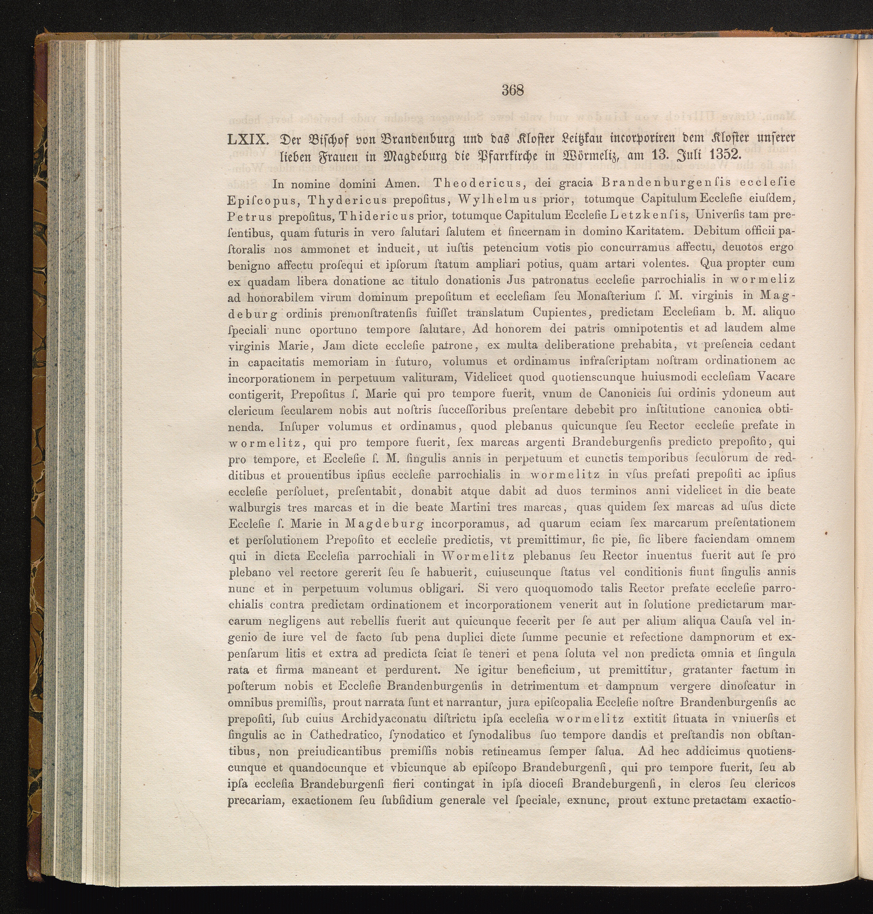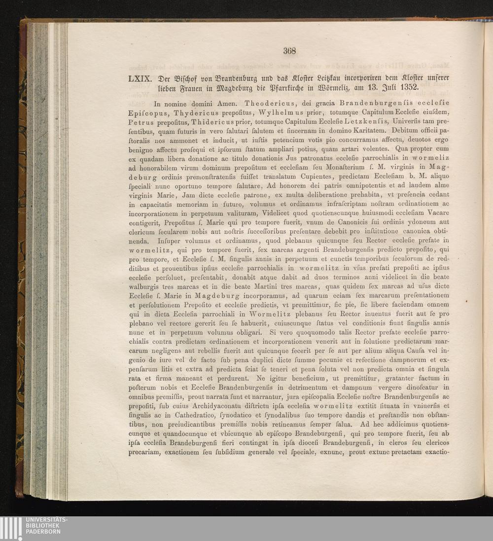 LXIX. Der Bischof von Brandenburg und das Kloster Leitzkau incorporiren dem Kloster[...]