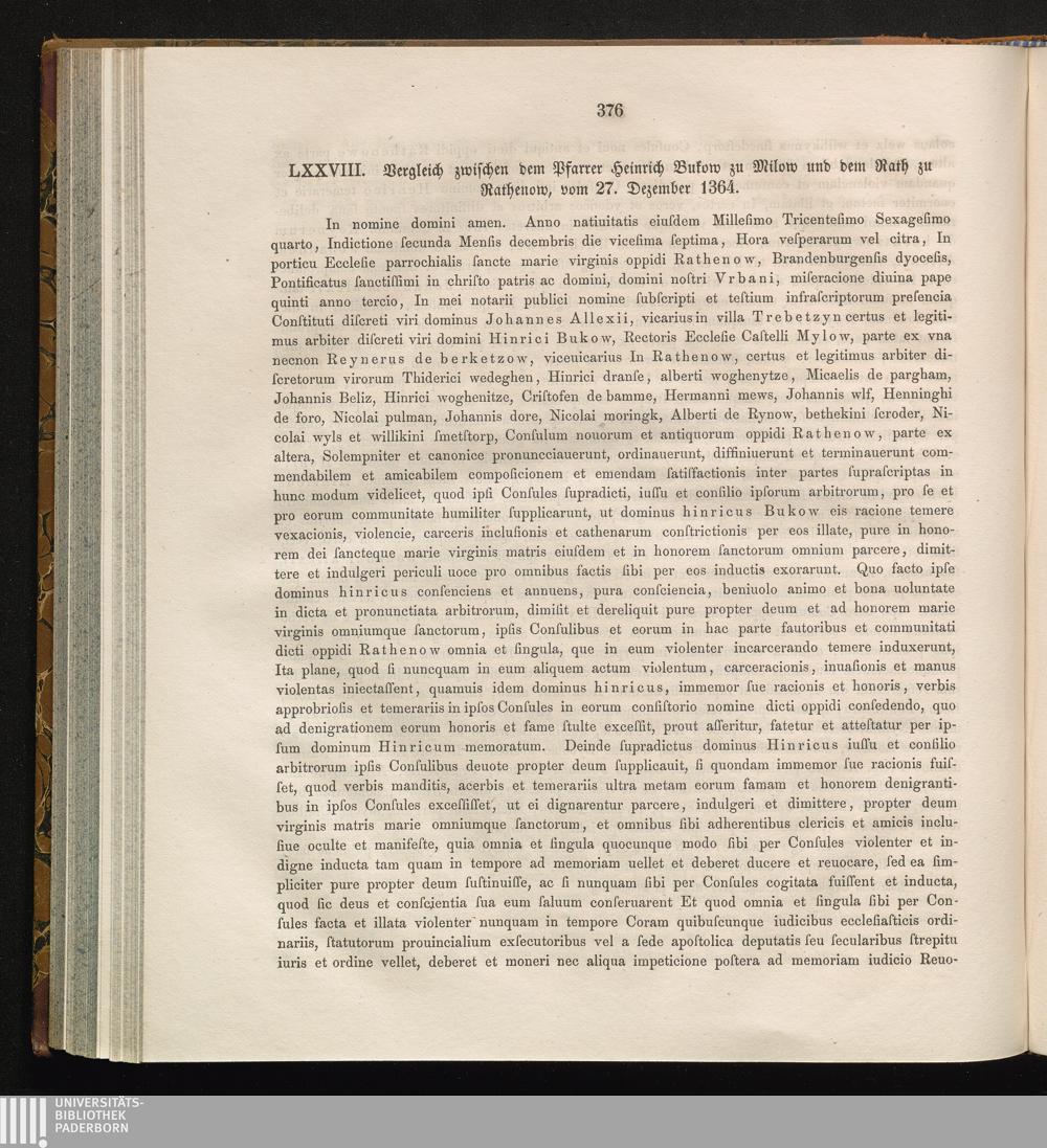 LXXVIII. Vergleich zwischen dem Pfarrer Heinrich Bukow zu Milow und dem Rath zu Rathenow,[...]