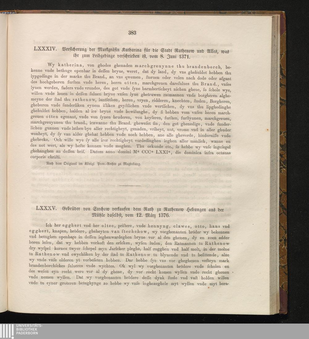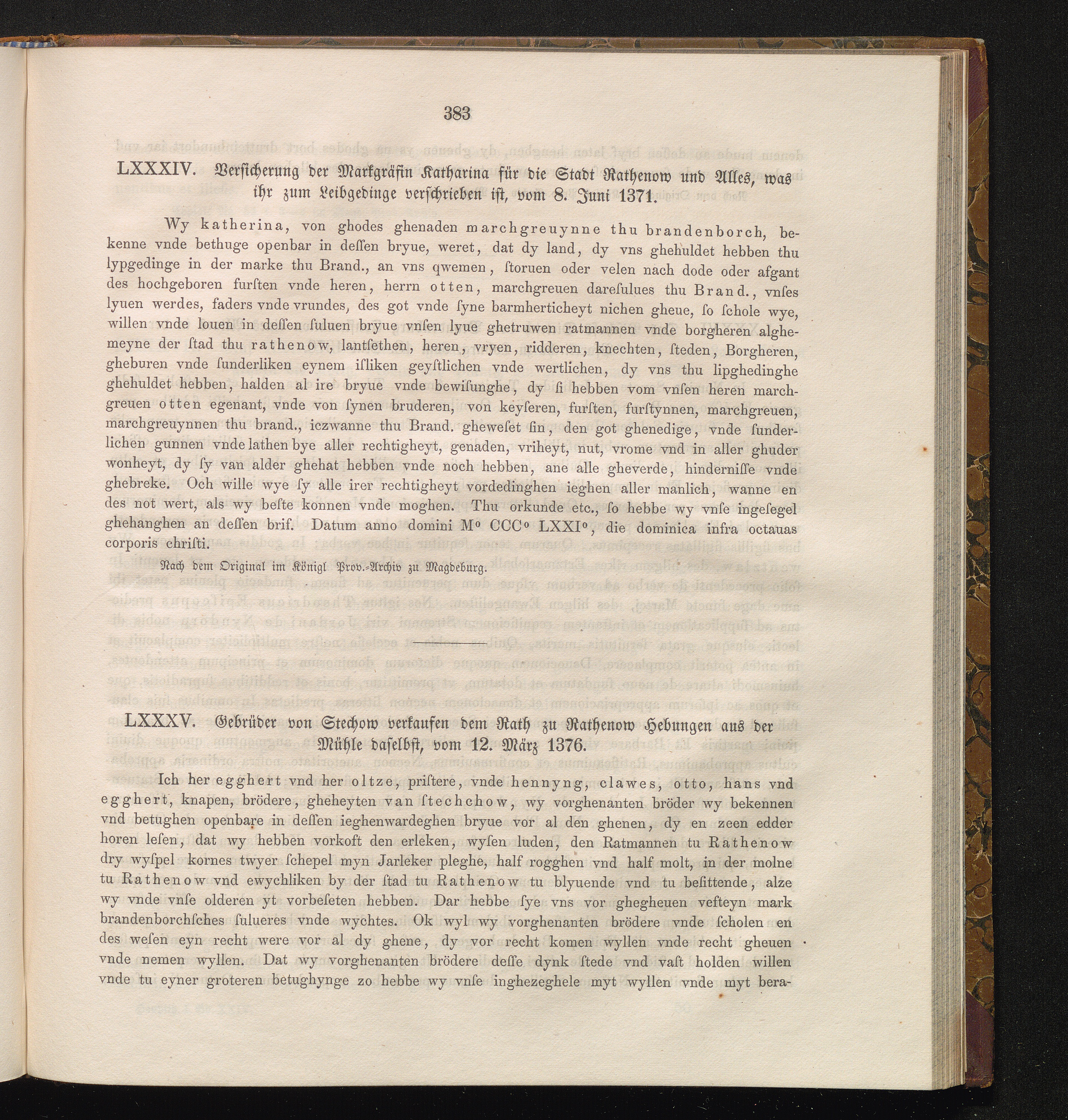 LXXXV. Gebrüder von Stechow verkaufen dem Rath zu Rathenow Hebungen aus der Mühle[...]