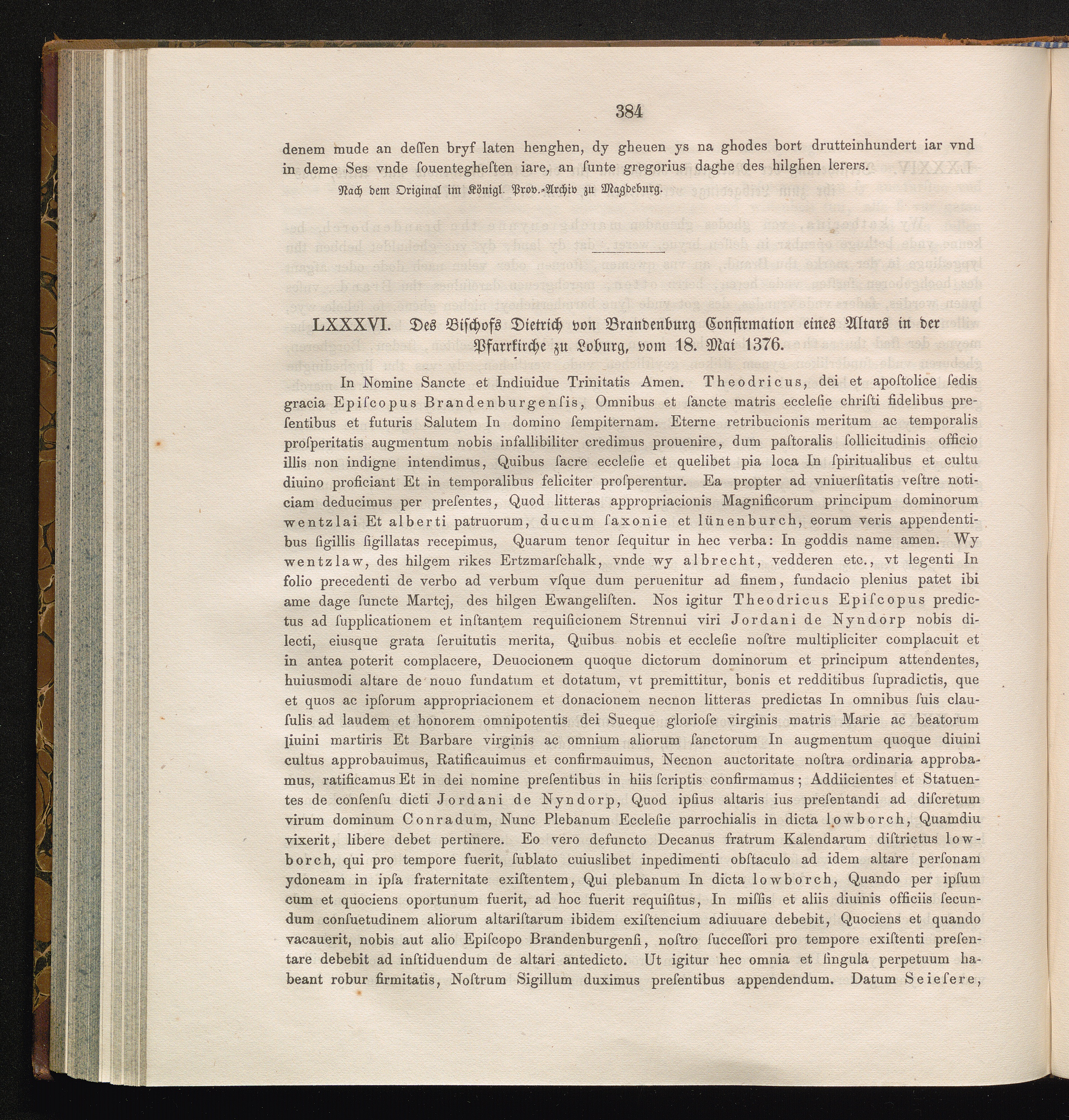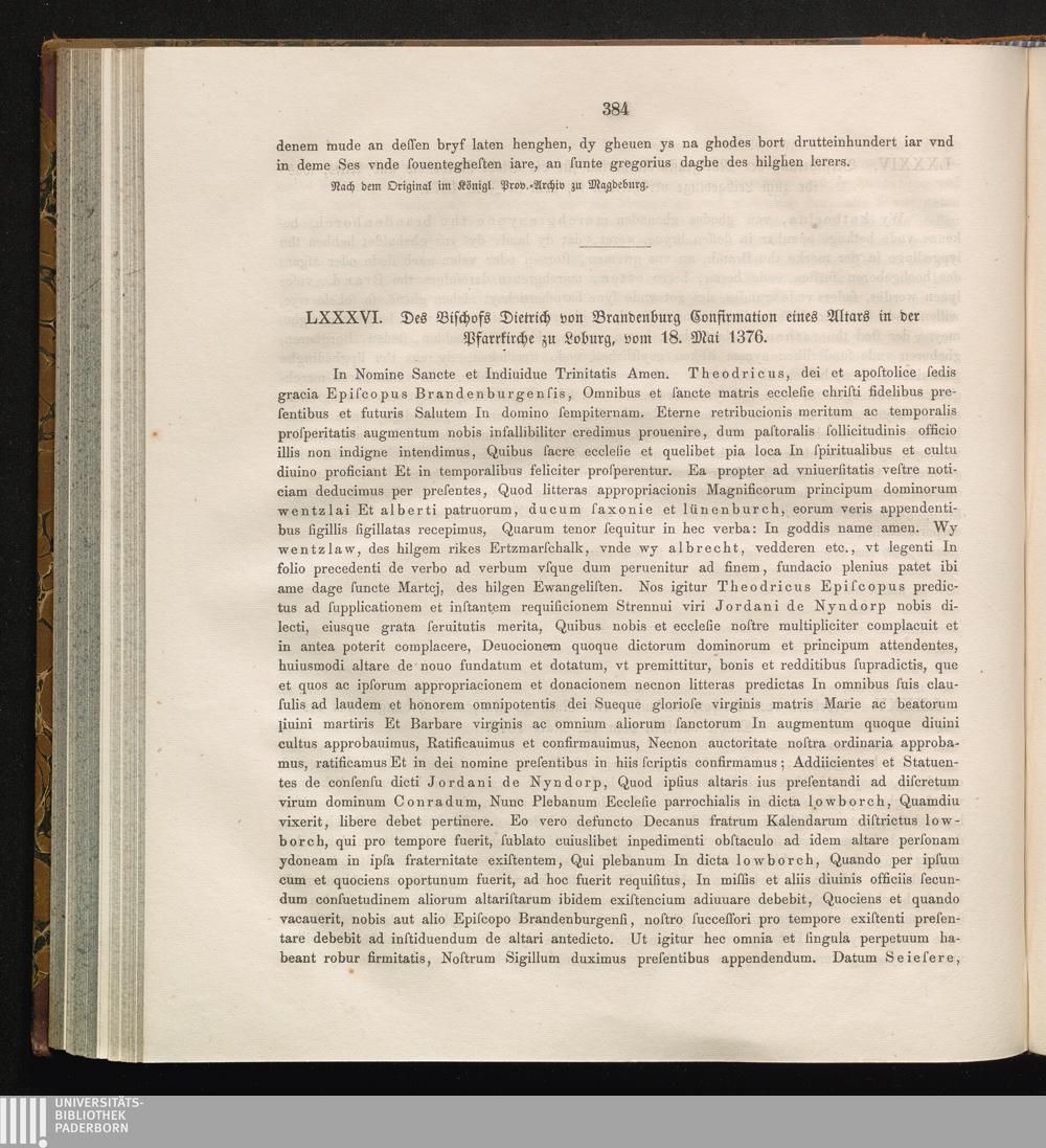 LXXXVI. Des Bischofs Dietrich von Brandenburg Confirmation eines Altars in der Pfarrkirche[...]