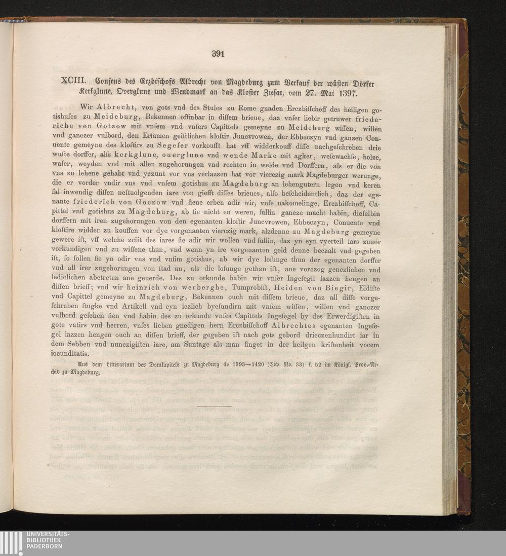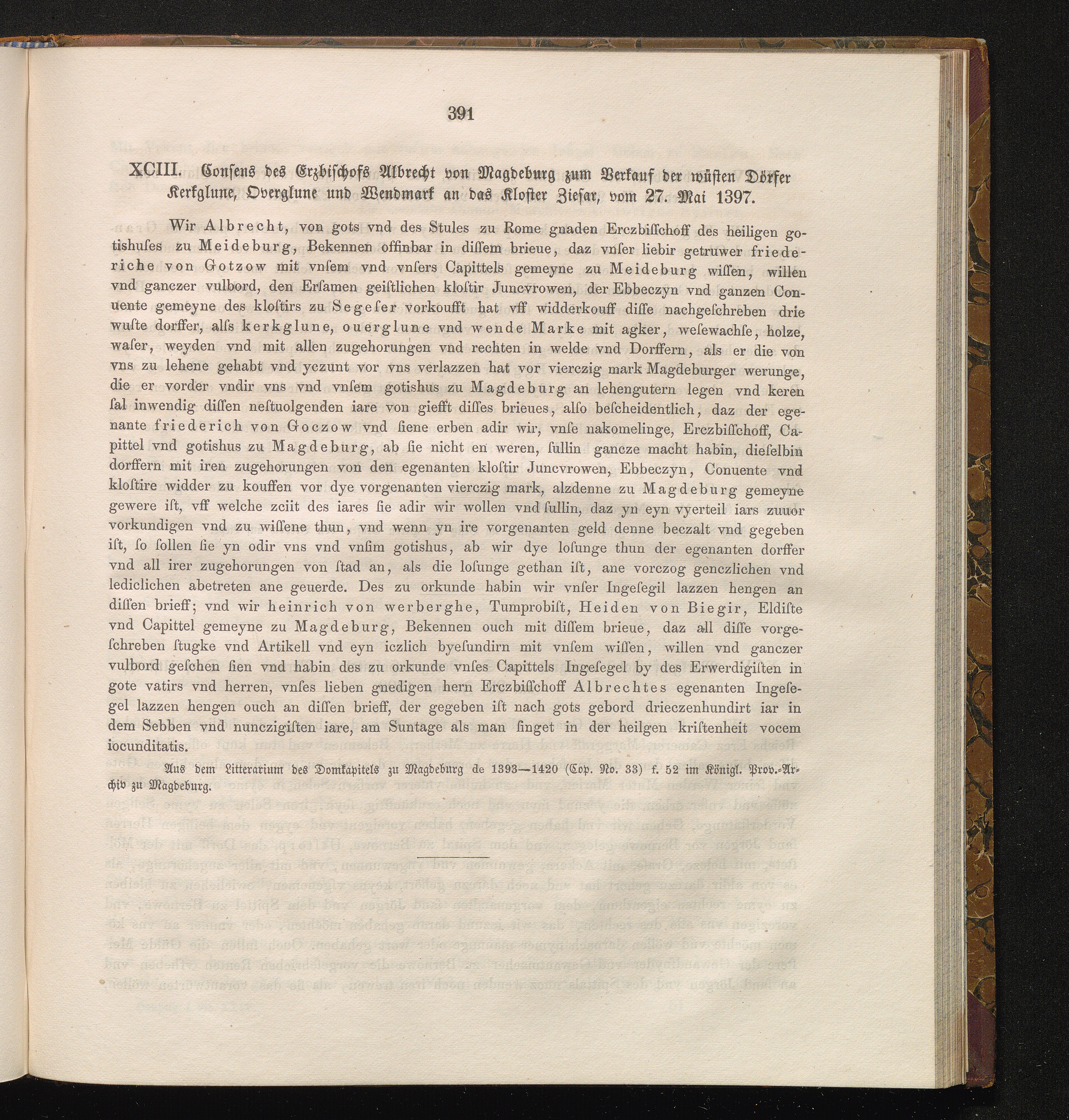 XCIII. Consens des Erzbischofs Albrecht von Magdeburg zum Verkauf der wüsten Dörfer[...]