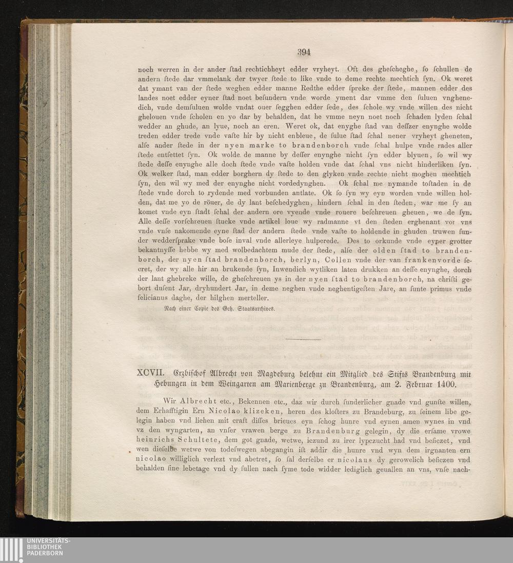 XCVII. Erzbischof Albrecht von Magdeburg belehnt ein Mitglied des Stifts Brandenburg[...]