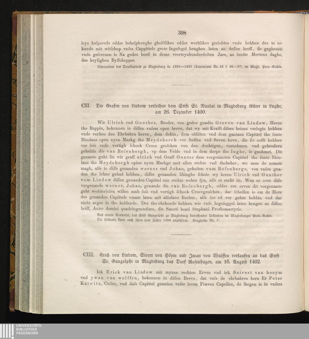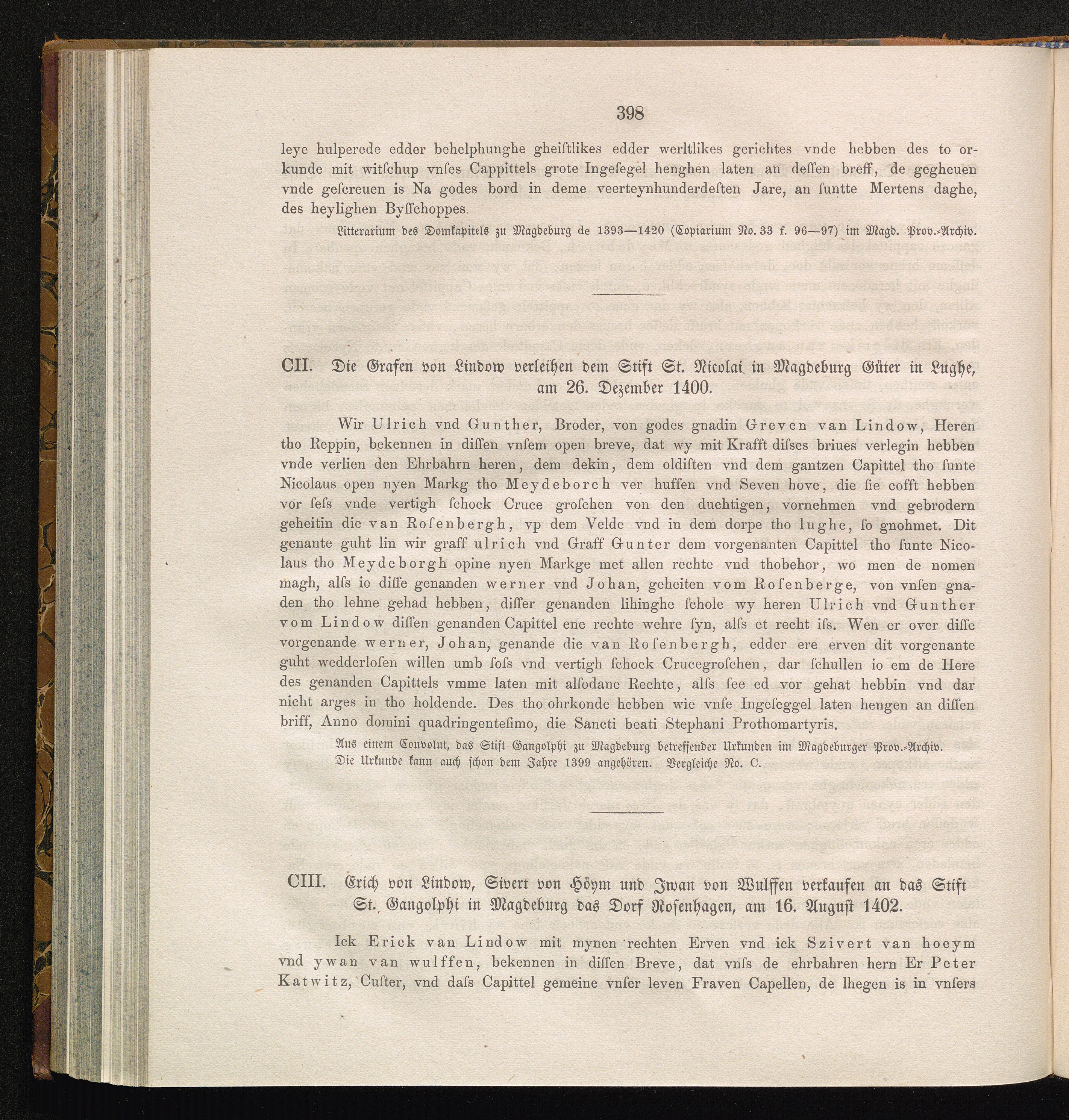 CIII. Erich von Lindow, Sivert von Höym und Jwan von Wulffen verkaufen an das Stift[...]