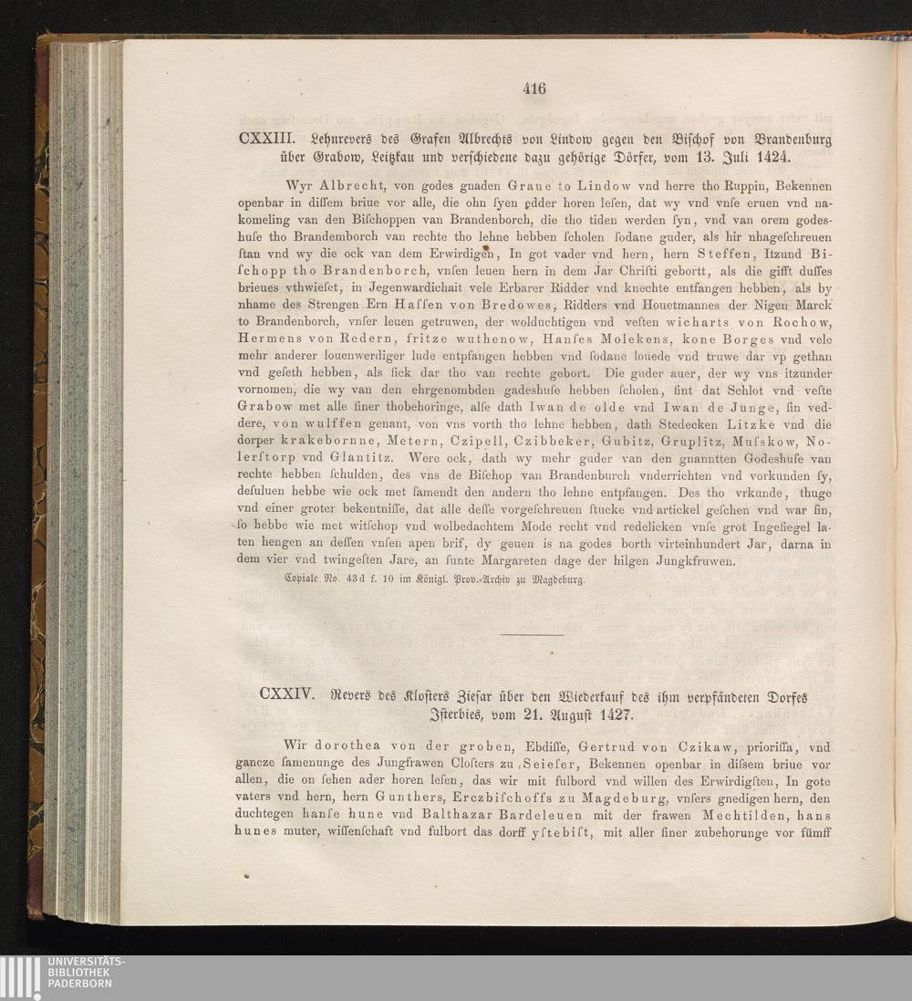 CXXIV. Revers des Klosters Ziesar über den Wiederkauf des ihm verpfändeten Dorfes[...]