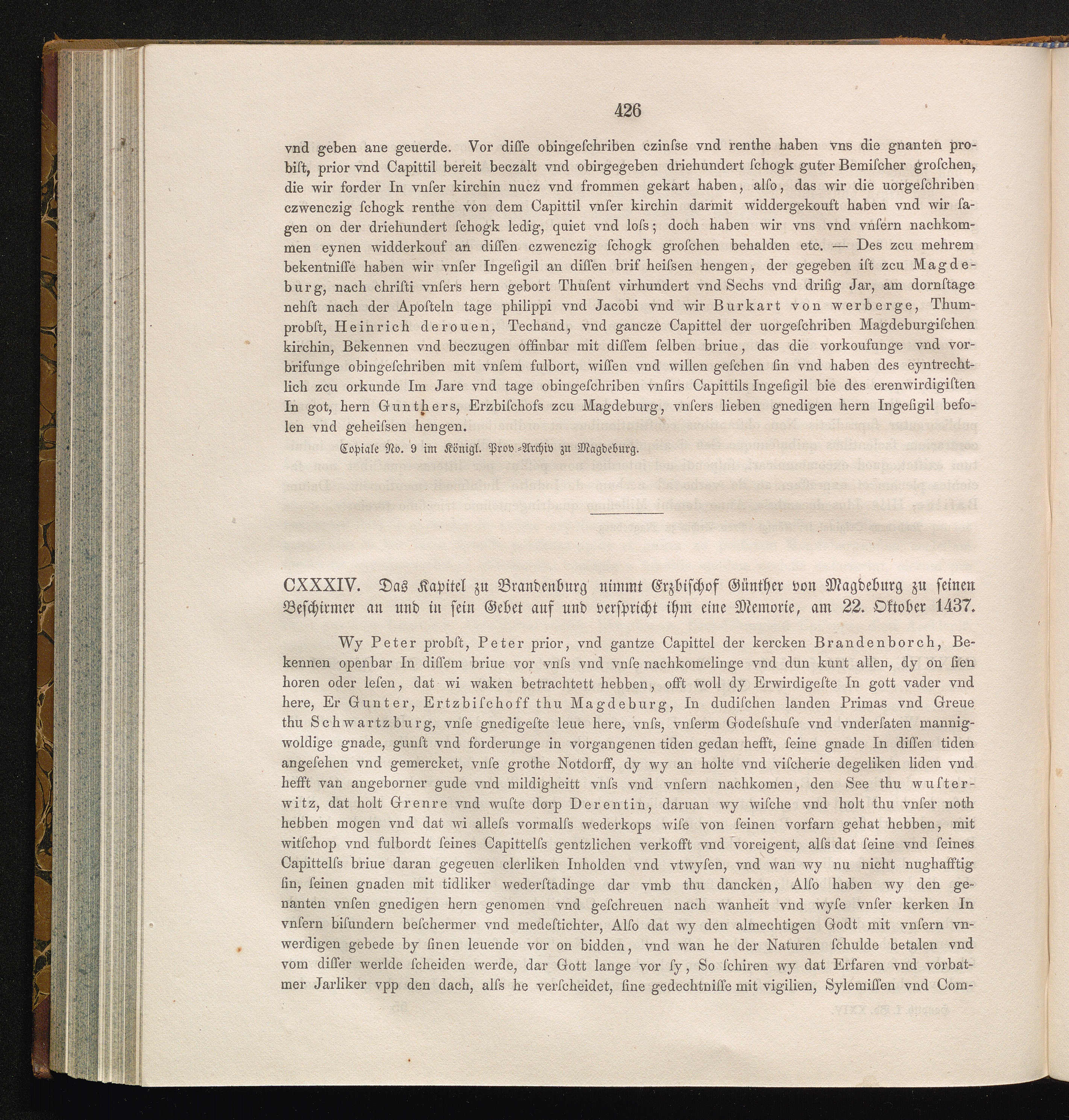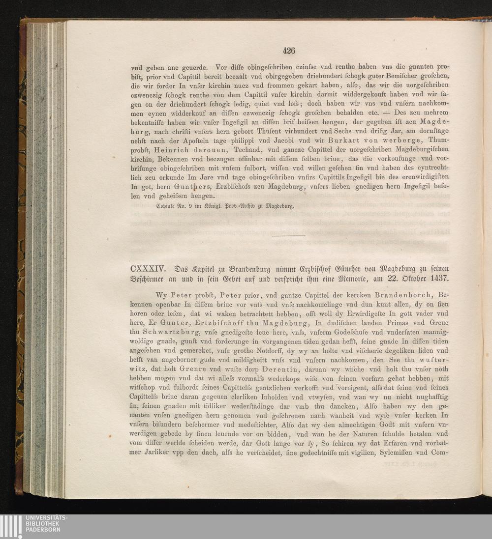 CXXXIV. Das Kapitel zu Brandenburg nimmt Günther von Magdeburg zu seinen Beschirmer[...]