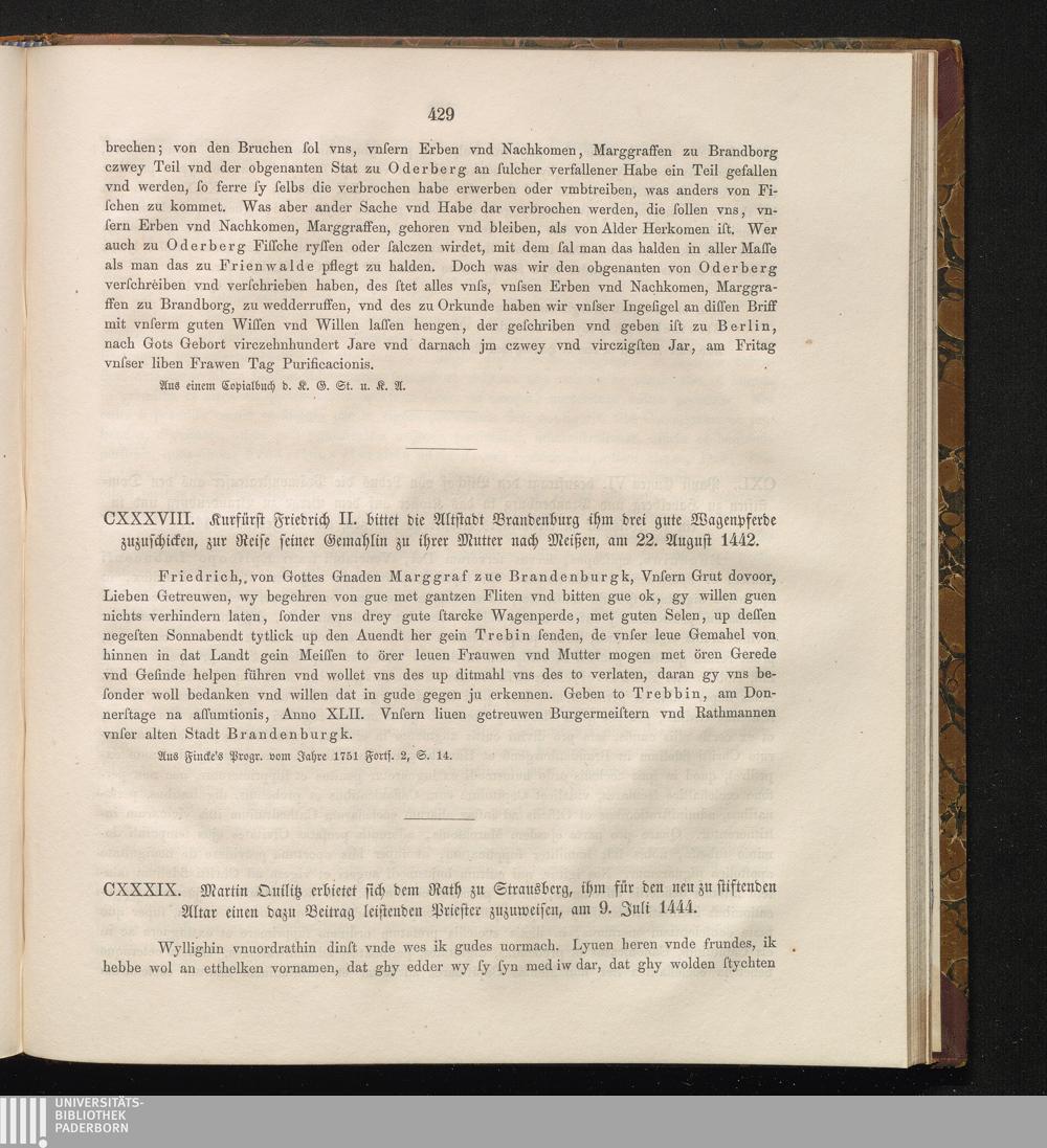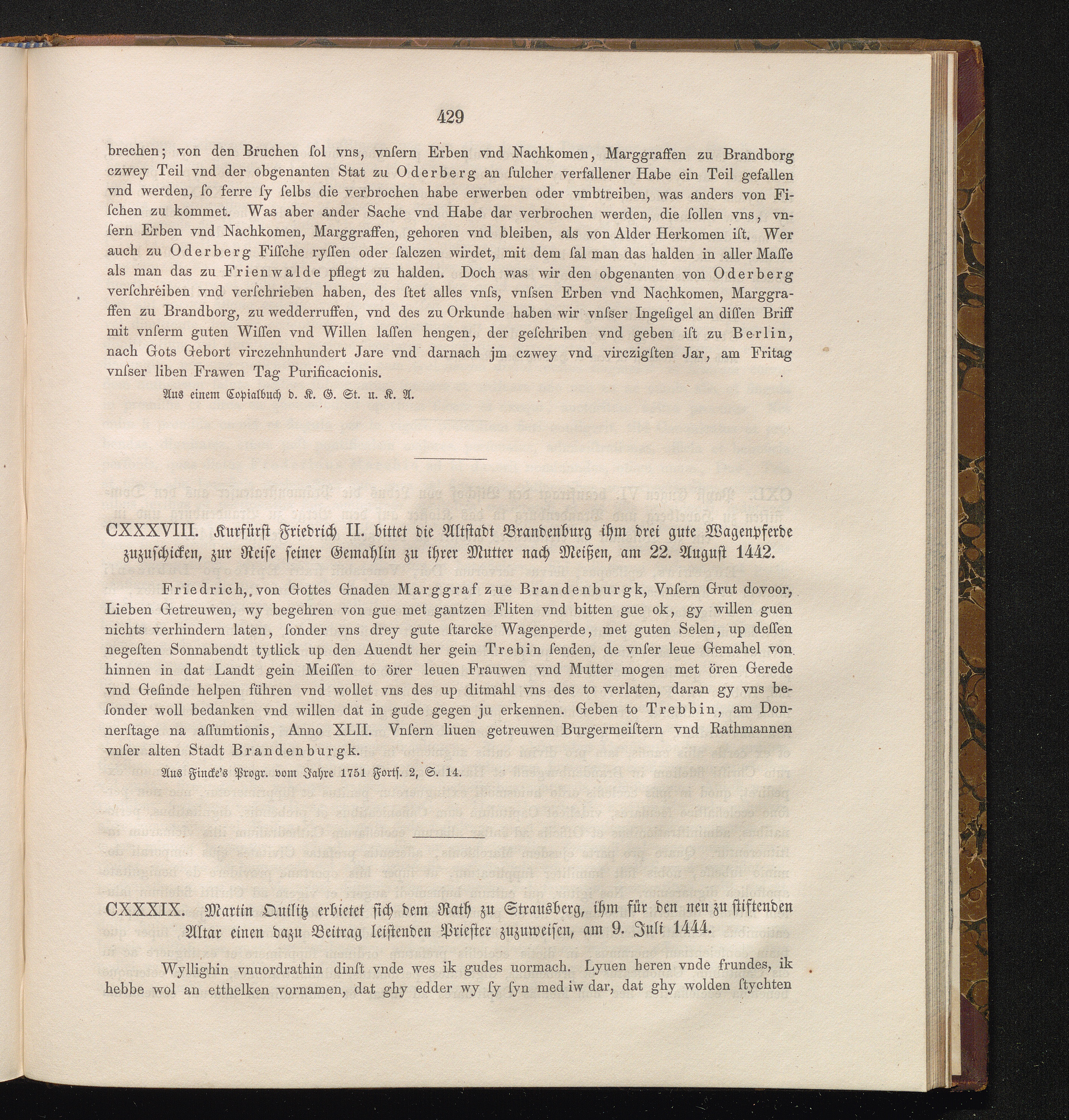 CXXXIX. Martin Quilitz erbietet sich dem Rath zu Strausberg, ihm für den neu zu stiftenden[...]