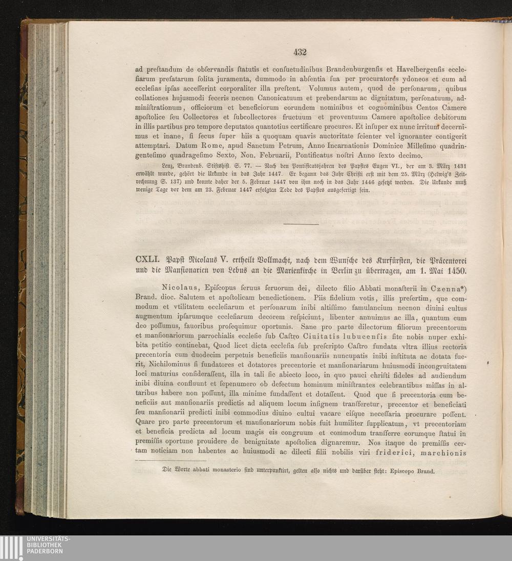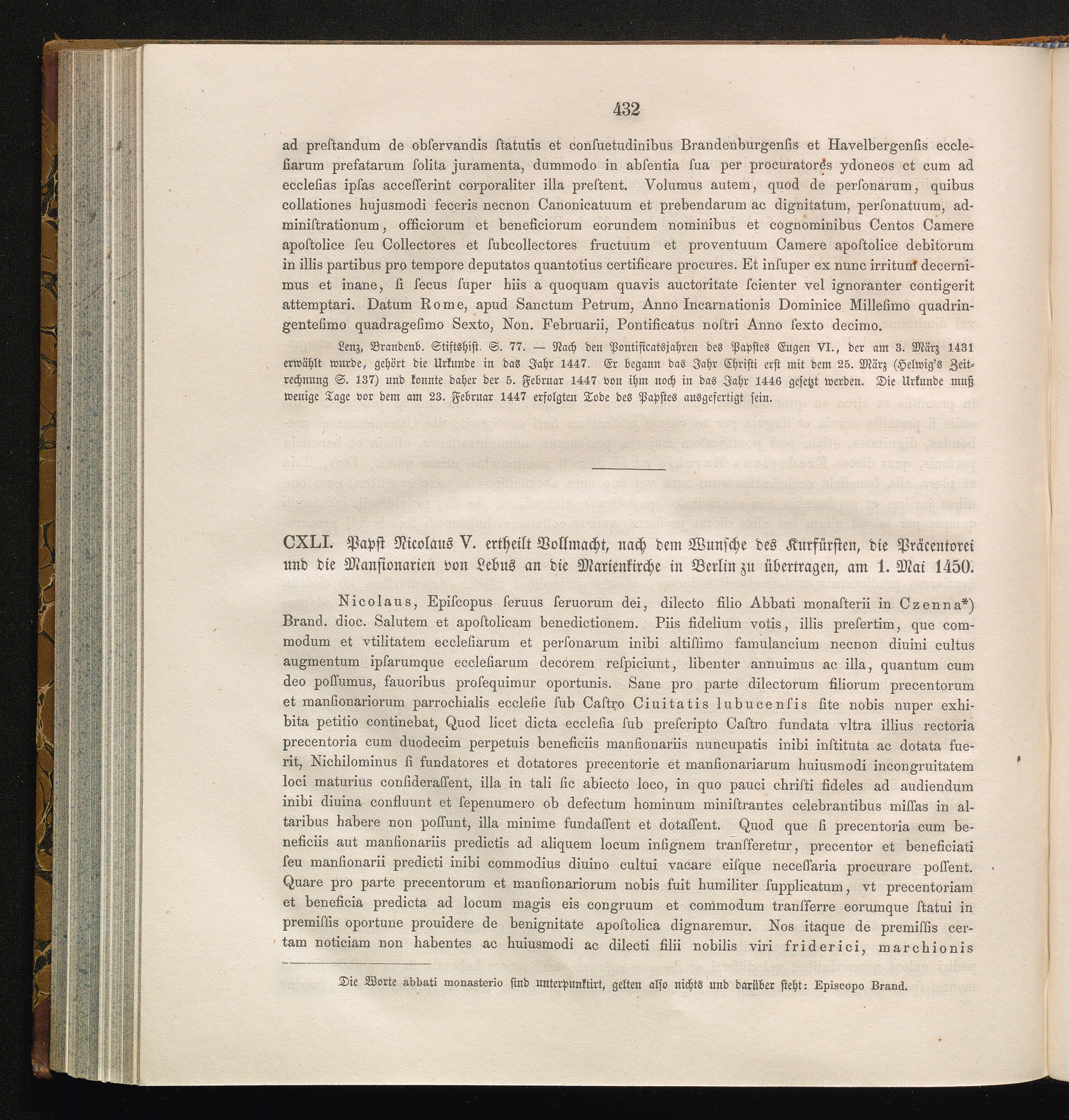 CXLI. Papst Nicolaus V. ertheilt Vollmacht, nach dem Wunsche des Kurfürsten, die[...]