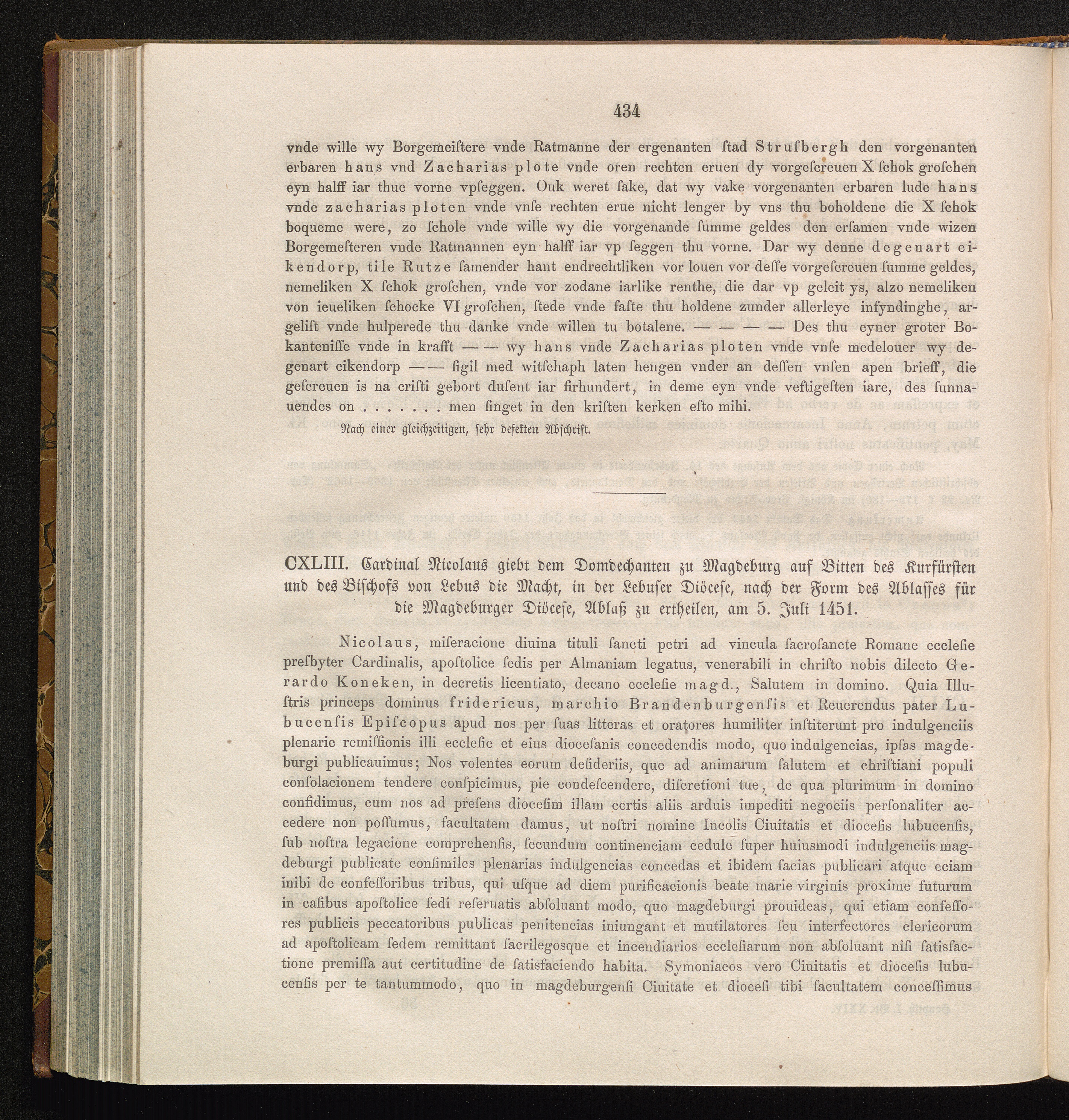 CXLIII. Cardinal Nicolaus giebt dem Domdechanten zu Magdeburg auf Bitten des Kurfürsten[...]