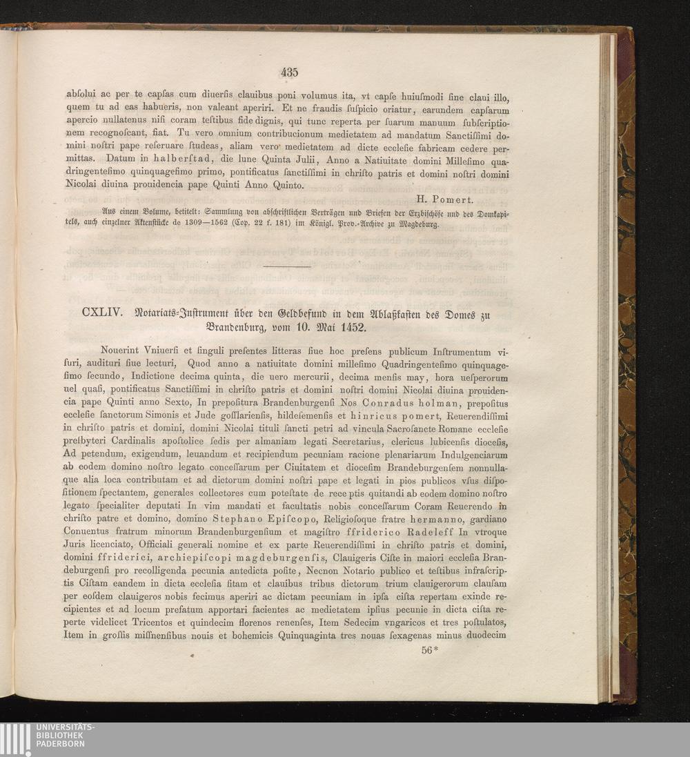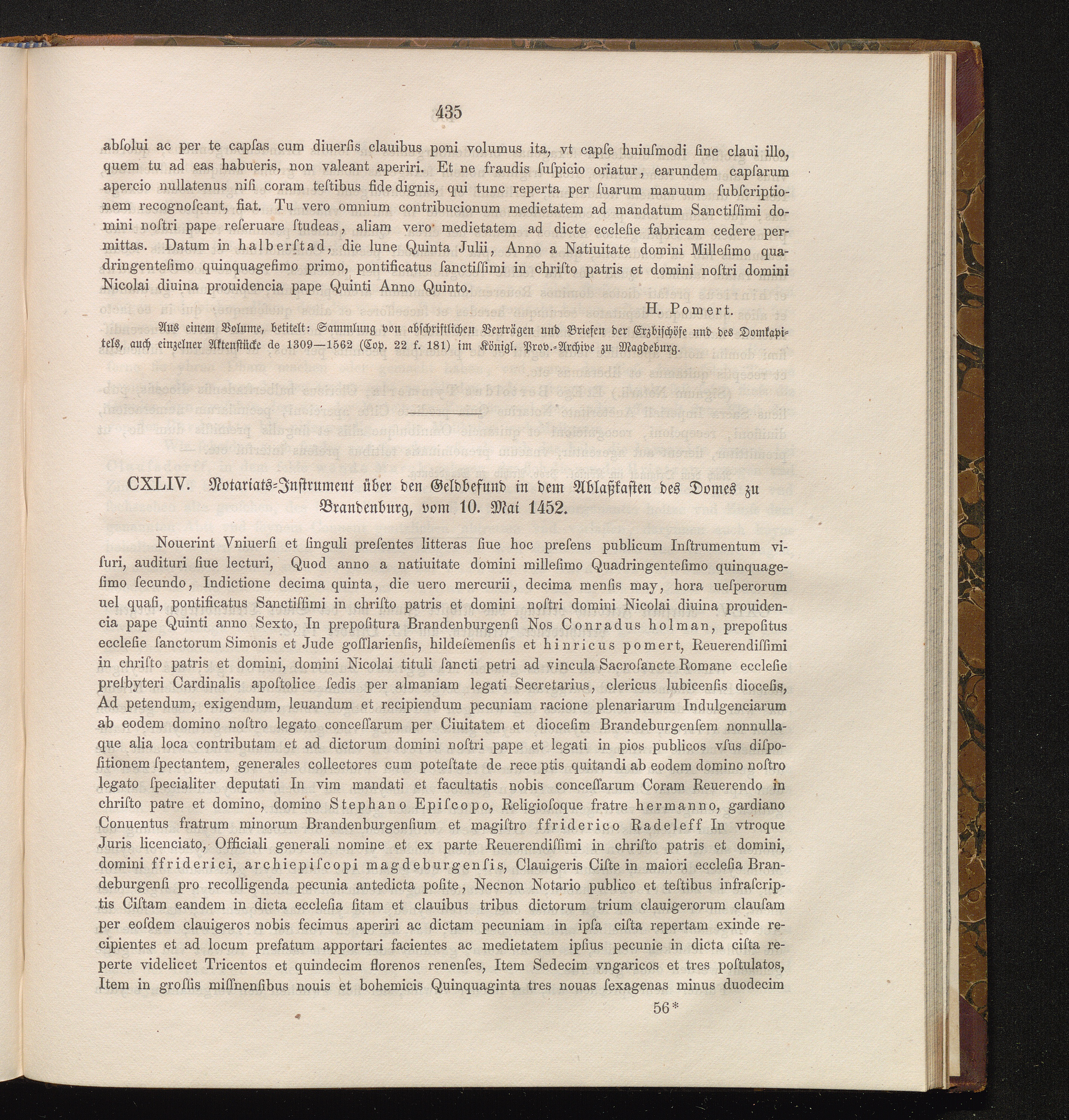 CXLIV. Notariats-Jnstrument über den Geldbefund in dem Ablaßlasten des Domes zu Brandenburg,[...]