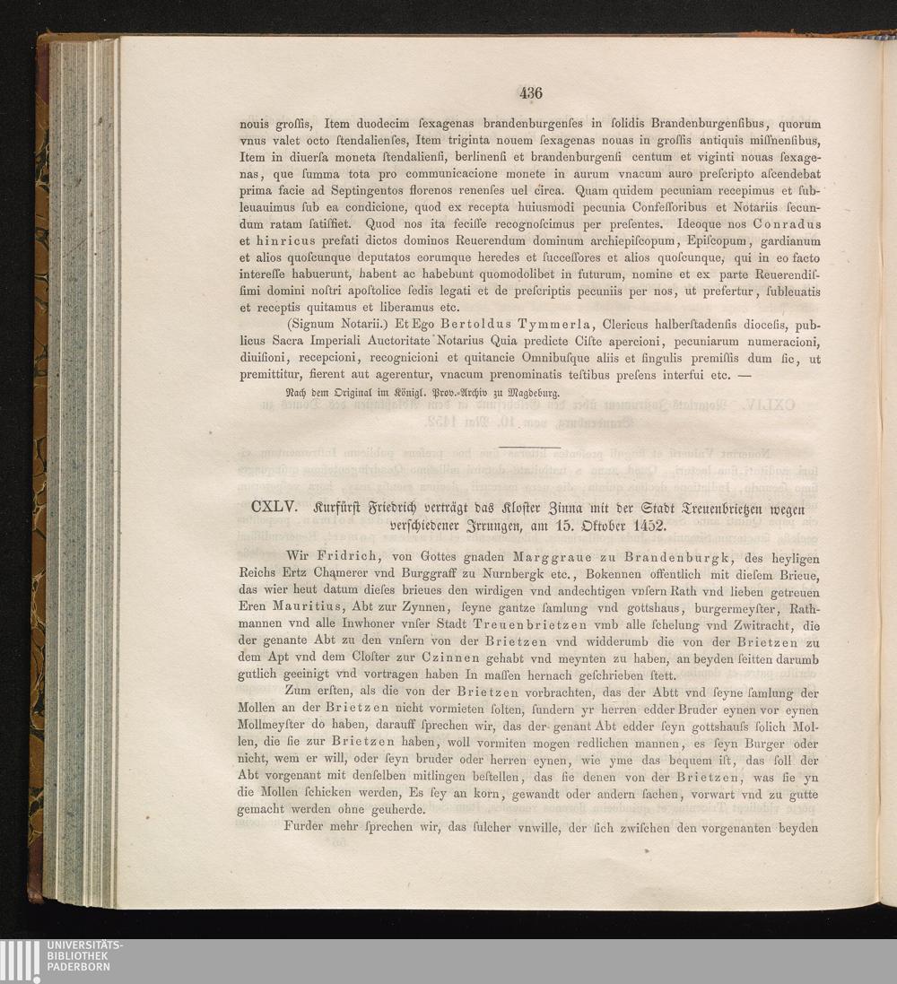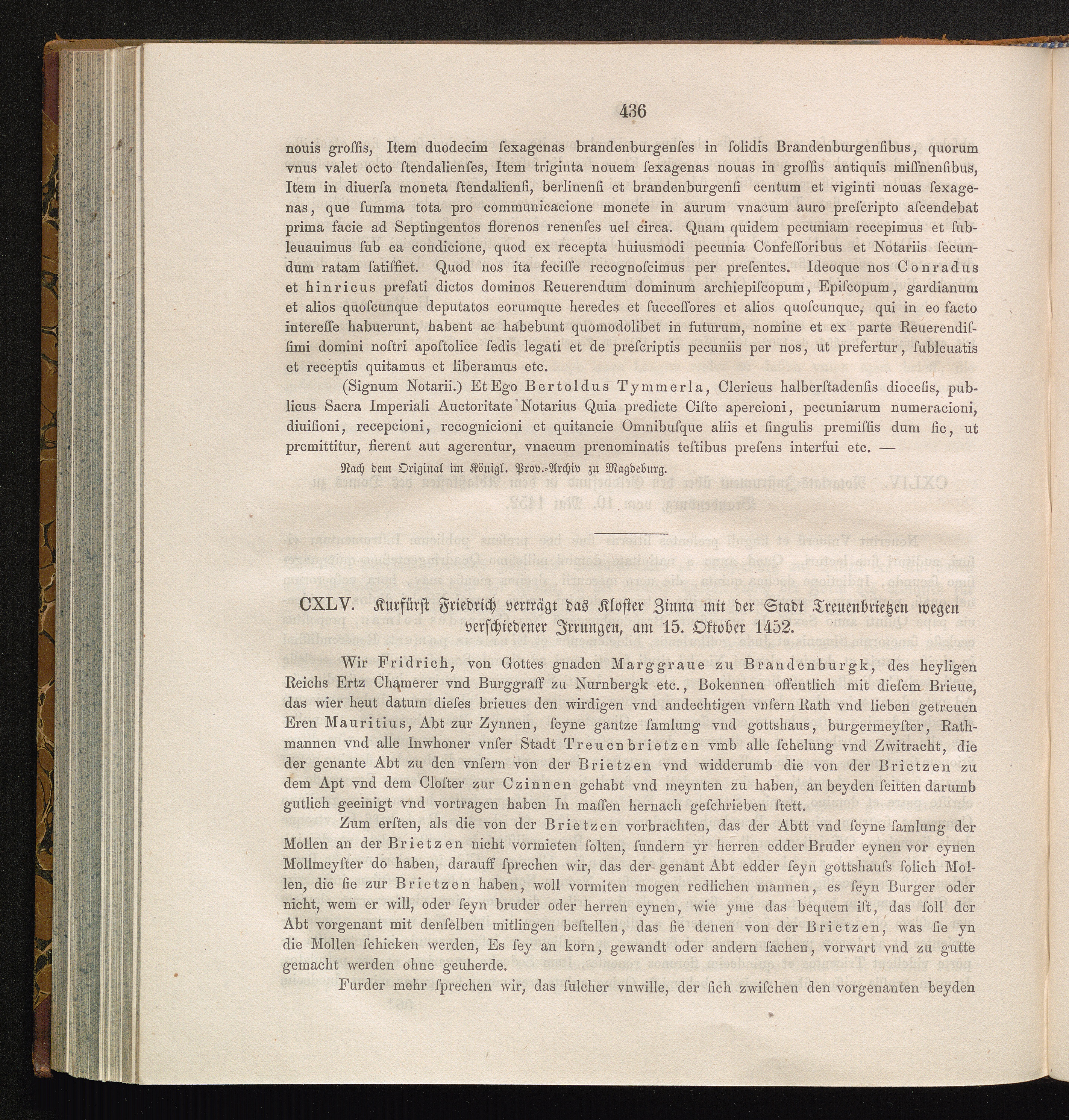 CXLV. Kurfürst Friedrich verträgt das Kloster Zinna mit der Stadt Treuenbrietzen[...]