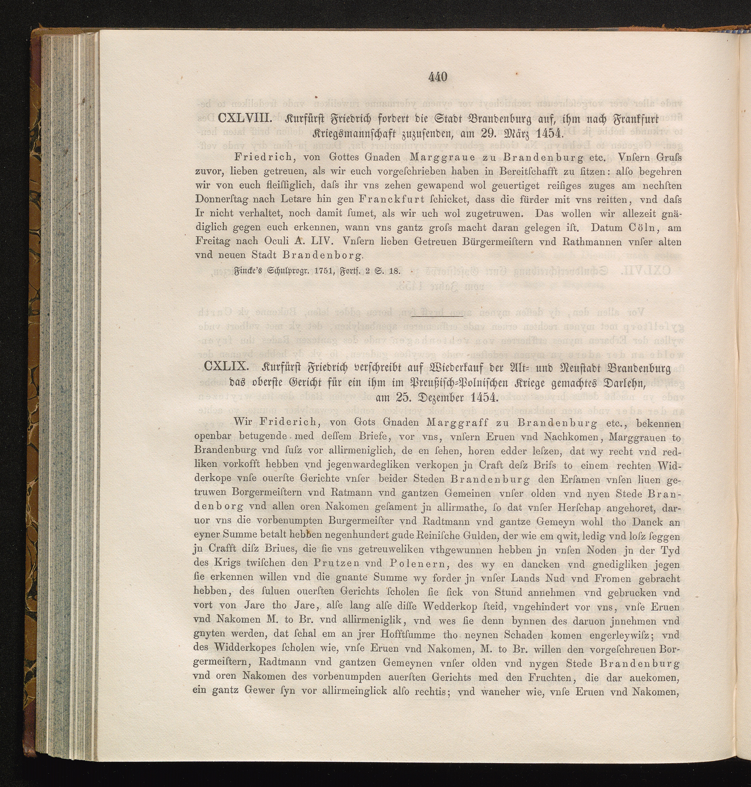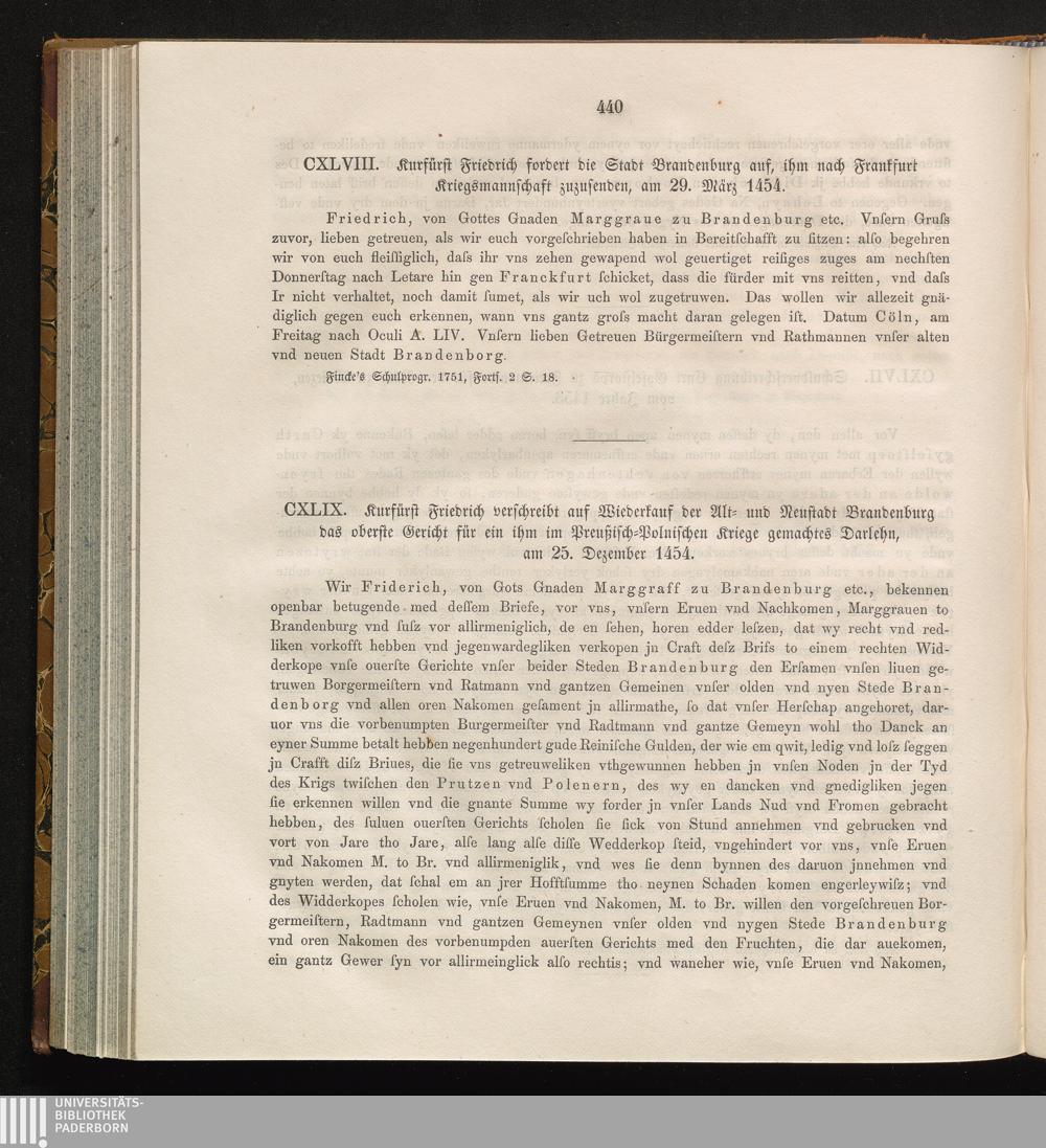 CXLIX. Kurfürst Friedrich verschreibt auf Wiederkauf der Alt- und Neustadt Brandenburg[...]